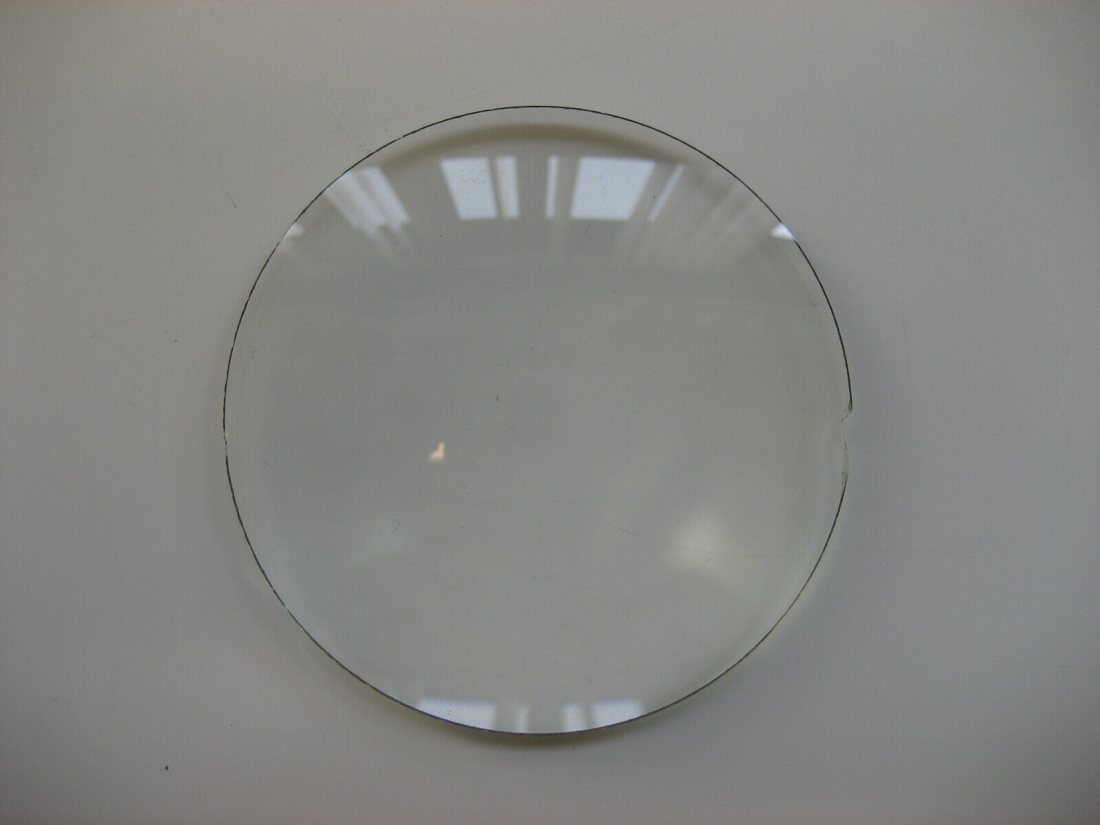 Een rond geslepen dik brandglas bestemd voor geallieerde piloten..