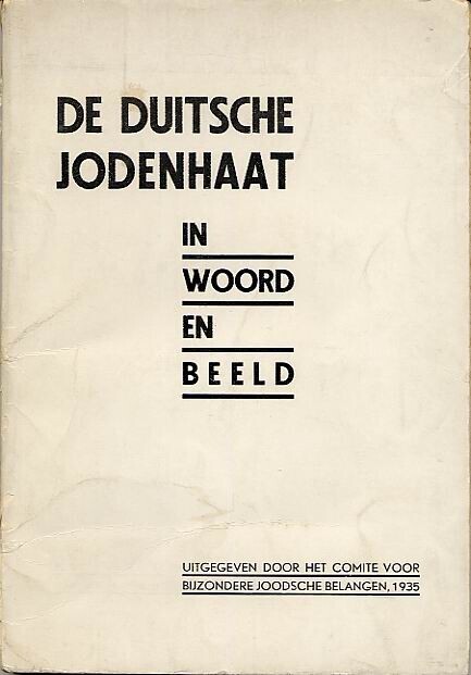 Boek met voorbeelden van antisemitisme in het Duitsland van de jaren dertig. Het boekje omvat 64 pagina's en bevat citaten onder andere Duitse liederen en geschriften. Met inlegvel over het werk van het "Comité voor bijzondere Joodsche belangen".