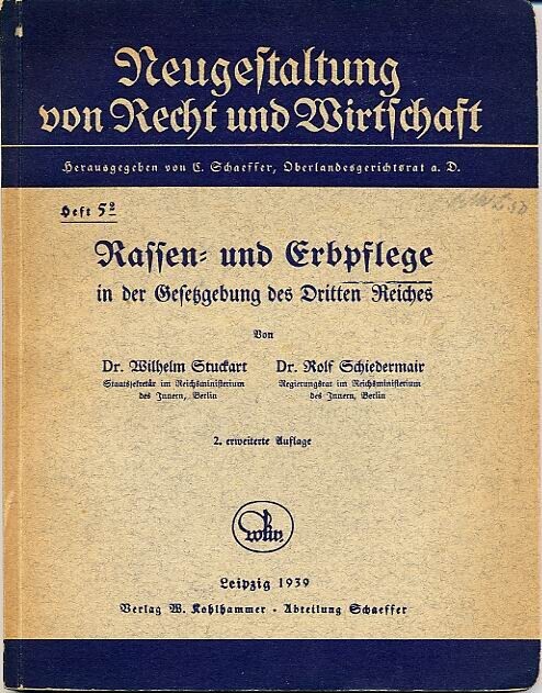 Duits boek in gotische letter gedrukt over de Duitse rassenwetgeving. Het boek omvat 124 pagina's. Met banderol.