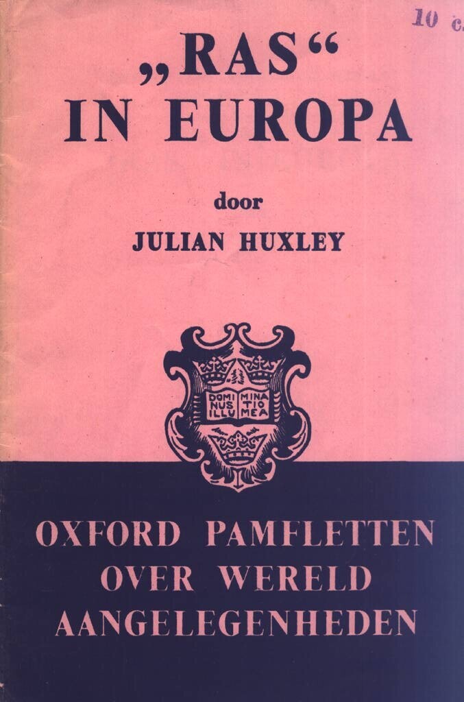 Nederlandstalige uitgave in de reeks: "Oxford pamfletten over wereldaangelegenheden". Het voorwoord vermeldt: "De vage uitdrukking 'ras' wordt in moderne pseudowetenschappelijke geschriften en voor nationale propaganda dikwijls verkeerd gebruikt. In dit vlugschrift wordt de beteekenis van dat woord besproken en aangetoond, dat de theorie over een Arisch ras een fabel is." Nationale typen, de 'Noordsche theorie', het Jodenvraagstuk en de voordeelen van rassenvermenging zijn enige andere punten, die er in worden behandeld." De uitgave omvat 32 pagina's.
