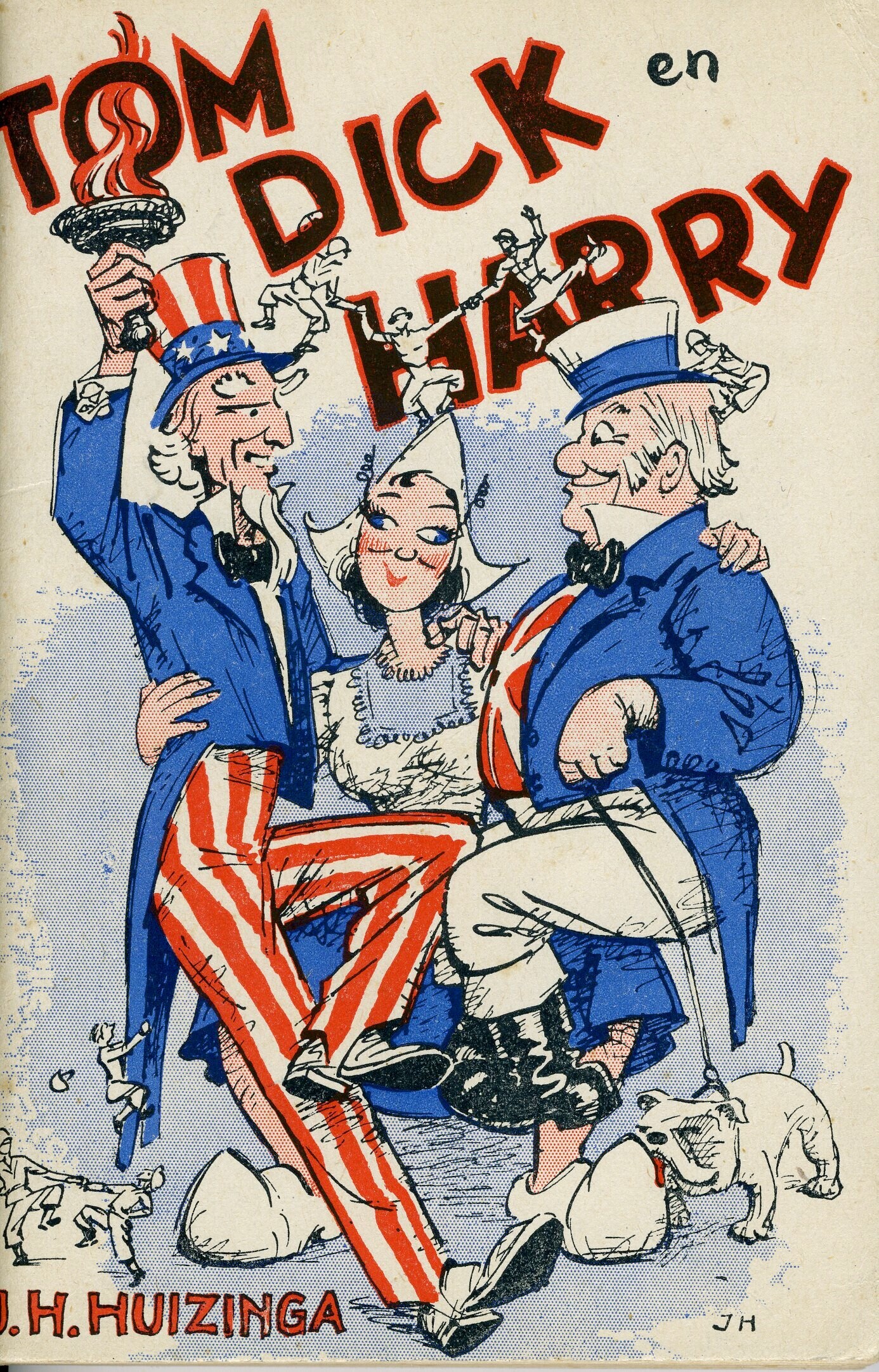 Twee exemplaren van "Tom, Dick en Harry" is een boekje dat in 1944 werd uitgegeven door The Netherlands Publishing Company in Londen. Het maakt deel uit van een in overleg met de Regeerings Voorlichtingsdienst vastgestelde serie uitgaven over onderwerpen die in die tijd van bijzonder belang werden geacht voor het Nederlandse volk. Het boekje omvat 144 pagina's en is geïllustreerd met zwartwit tekeningen. Op de omslag een tekening van een vrouw in Nederlandse klederdracht die een karakteristieke Amerikaan en een Brit omhelst.