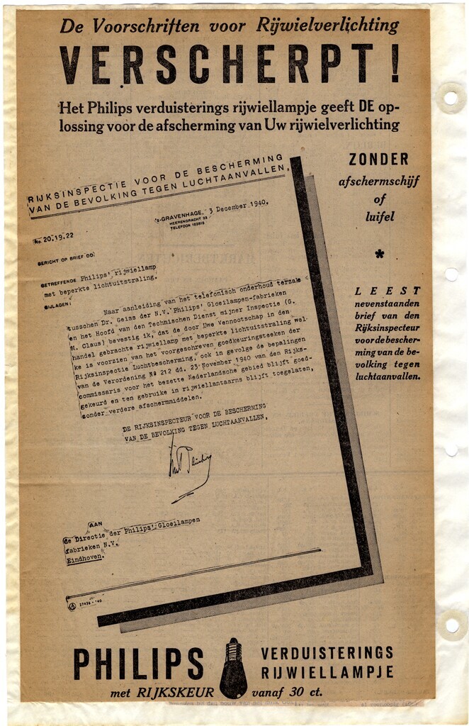 Een 'ringbandalbum' van het merk "Duopress" met een zwarte kartonnen kaft. Op de rug de titel: "Buitenland 4 nov. 1939 - 10 juni 1940". In het album zijn op doorzichtige vellen papier krantenknipsels geplakt die gaan over alles wat met de oorlog in deze periode te maken heeft. Tussen de geplakte krantenknipsels zijn ook andere documenten te vinden in het album: - pamfletten met de volgende onderwerpen: * "Achtung! Das Abhören jeden Feindsenders wird nach dem Deutschen Gesetz mit dem Tode bestraft"; * "Bekendmaking. De Burgemeester van Rijsbergen maakt bekend: dat alle Pamfletten Strooibiljetten enz. welke klaarblijkelijk uit vliegtuigen zijn geworpen, direct moeten worden verzameld en ingeleverd bij den Gemeente-Veldwachter". Datering: "Rijsbergen, 21 October 1940"; * "Bekendmaking. De Burgemeester van Alphen aan den Rijn maakt bekend, dat van een neergestort vliegtuig, of van een vliegtuig, dat een noodlanding heeft gemaakt (onverschillig of het een Duitsch of vijandelijk vliegtuig betreft) in geen geval uitrustingsstukken mogen worden verwijderd en als aandenken behouden. Overtredingen van dit verbod. Ten slotte wordt nog bekend gemaakt, dat geen legerpaarden meer verkocht worden. Alphen aan den Rijn, 28 October 1940"; * "Waarschuwing" Personen die in het bezit zijn van paarden van de "Nederlandsche- of de Duitsche Weermacht" worden "voor de laatste maal in de gelegenheid gesteld om vóór 10 November 1940 aan de Doelenkazerne te Leiden, dit paard in te leveren". Datering: "Valkenburg L., 2 November 1940"; * "De Voorschriften voor Rijwielverlichting Verscherpt! Het Philips verduisterings rijwiellampje geeft de oplossing voor de afscherming van uw rijwielverlichting". Datering: "'s-Gravenhage, 3 december 1940"; * 2 pamfletten met een oproep aan de burgerij van Leiden om geen gevolg te geven aan sabotage-handellingen tegen de "Duitsche weermacht". Datering respectievelijk: 21 en 23 januari 1941. * "Aanmeldingsplicht van personen van geheel of gedeeltelijk Joodschen bloede". Datering: " 's-Gravenhage, 31 Januari 1941"; * Politie-oproep tegen het vernielen van vensterruiten. Datering: "Rotterdam, 21 Februari 1941". * "Bekendmaking aan de Amsterdamsche burgerij deel ik mede, dat het tot nader order verboden is: 1. zich 's avonds na half acht buiten noodzaak op straat te bevinden, 2. samenscholingen op straat te vormen" . Ondertekening door "De Burgemeester van Amsterdam, De Vlugt. Amsterdam, 26 Februari 1941"; * "Voor Joden verboden" met een stempel van de Procureur-Generaal van Amsterdam; * "Nederland, maak schoon je nest: De Joodsche invloed is de pest!"; * "Oproep van den Höheren S.S. und Polizeiführer aan de bevolking van Amsterdam" met maatregelen tegen de februari staking van 1941. Ondertekening door "get. Rauter, S.S.-Brigadeführer"; * "Waarschuwing" tegen beschadiging van borden van de Duitse Weermacht te Loosduinen. Datering: "'s-Gravenhage, 27 Februari 1941"; - 2 registratiekaarten van de NRO: "Nederlandsche Radio Omroep". Het gaat daarbij o.a. om het tijdstip van aanschaffing en de aanduiding van de plaats van het "radio-ontvangtoestel". Met potlood staat op de kaarten "april '42"; - Folder van de NRO: "Nederlandsche Radio Omroep" met het besluit van 27 December 1940, waarbij o.a. wordt gesteld: "Niemand mag in het bezit zijn van eene ontvanginrichting zonder aan de verplichting toto aangifte daarvan te hebben voldaan". - 8 Zwart-wit foto's: * 2 foto's van gebombardeerde huizen. * leporello met 5 foto's van de Maastunnel-Rotterdam, 22 november 1940. * parade van de jeugdstorm en de NSB (mogelijk genomen bij de Paleistuin te Den Haag). * door oorlogsgeweld getroffen huizen, waarschijnlijk aan het Lange Voorhout te Den Haag. - "Aanmeldingsformulier voor één persoon, die geheel of gedeeltelijk van joodschen bloede is (Verordening 6/1941)". "Uitgegeven met toestemming van het hoofd der Rijksinspectie van de bevolkingsregisters beschikking d.d. 31 Januari 1941 nr. 5". - Een distributiebon voor een "Houten rijwiel band"; - Distributiebonnetjes voor: vleesch, groente, tabak, versnaperingen, kaas, bloem, serviesgoed, melk, boter algemeen, aardappelen. - Een in het Duits en Nederlands opgesteld "Verordeningenblad voor het bezette Nederlandsche gebied. Stuk 15. Uitgegeven 9 April 1941"; - Een in het Duits en Nederlands opgesteld "Verordeningenblad voor het bezette Nederlandsche gebied. Stuk 26. Uitgegeven 27 Juni 1941";