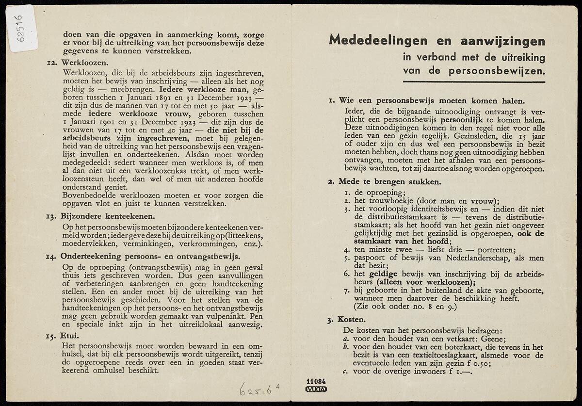 Document met gedetailleerde aanwijzingen met betrekking tot het persoonsbewijs.