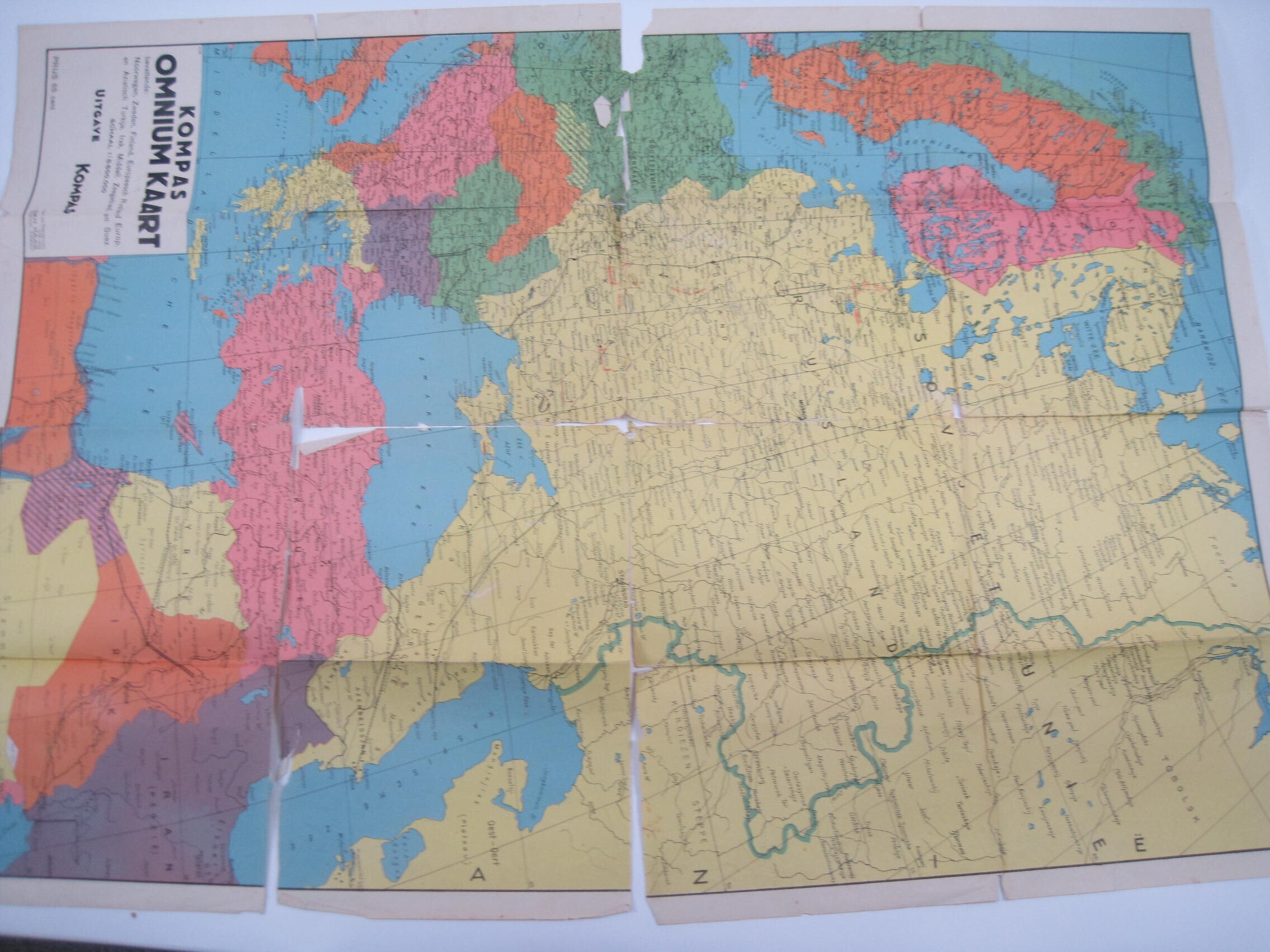 Een kaart van Oost-Europa waarop tijdens de Tweede Wereldoorlog de vorderingen van het Russische leger zijn bijgehouden.