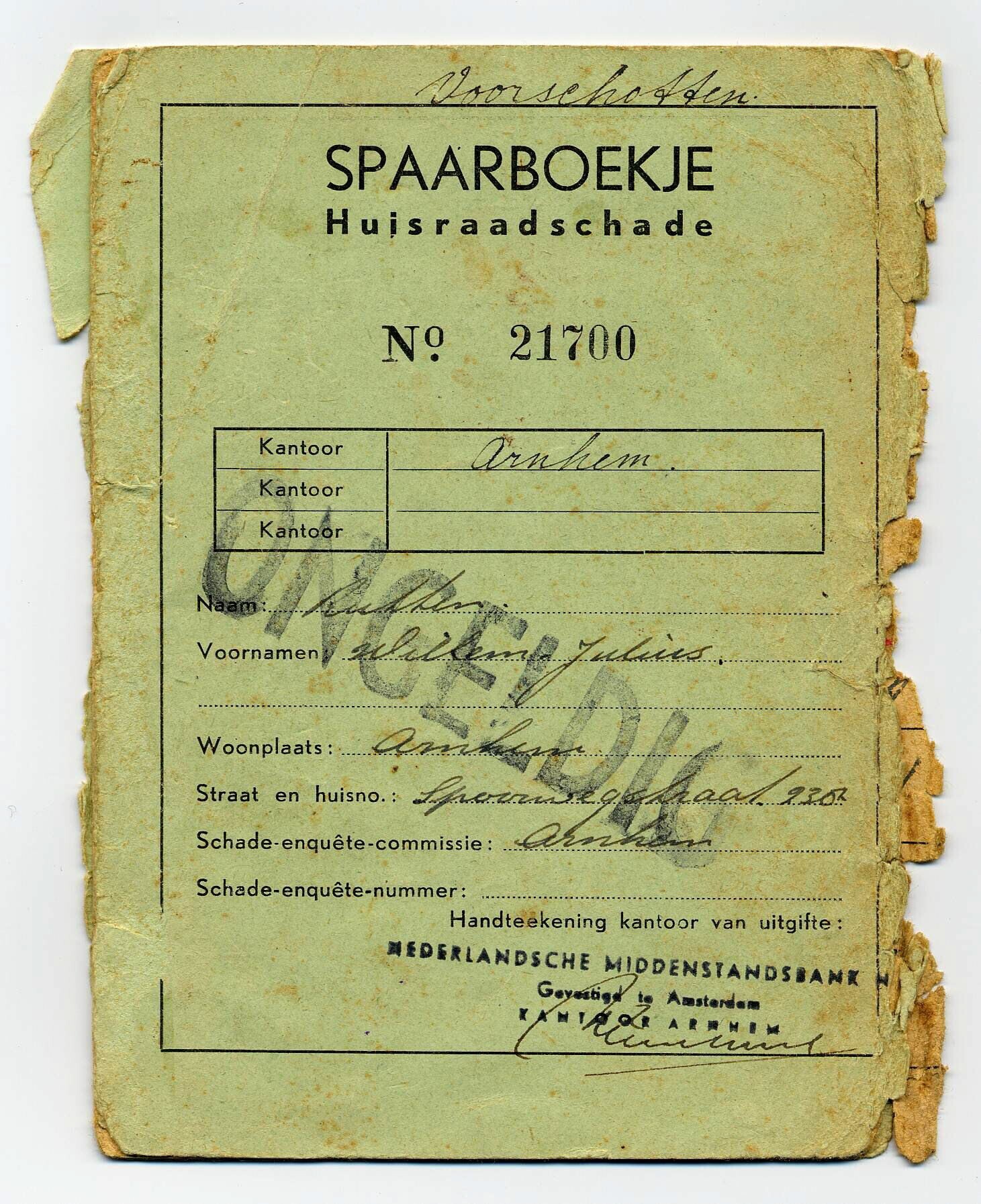 Spaarboekje Huisraadschade