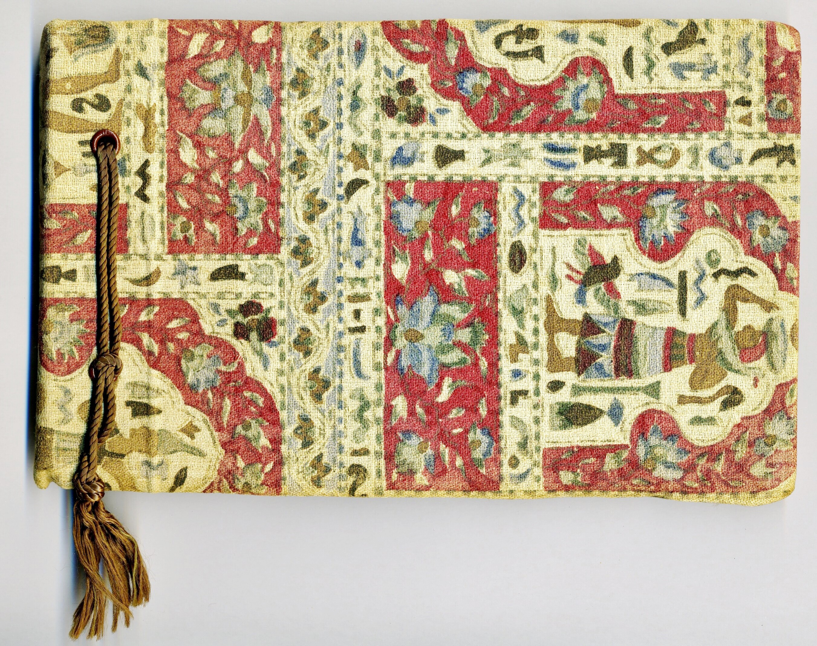 Fotoalbum met zwartwit foto's van de koninklijke familie gemaakt vóór en tijdens de bezetting. Het album is gebonden met een koord. Het omslag is met overtrokken met textiel met Egyptische en Aziatische motieven.