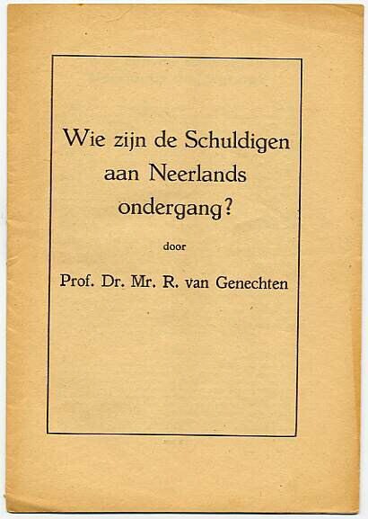 Twee exemplaren van een boek "Wie zijn de Schuldigen aan Neerlands ondergang'' wordt een verklaring gegeven voor het feit dat een welvarend volk, levend op een hoog cultuurpeil, in enkele maanden ten onder kon gaan. De schuld wordt onder andere gelegd bij de Nederlandse generaals en politici. De boek bevat 16 pagina's.