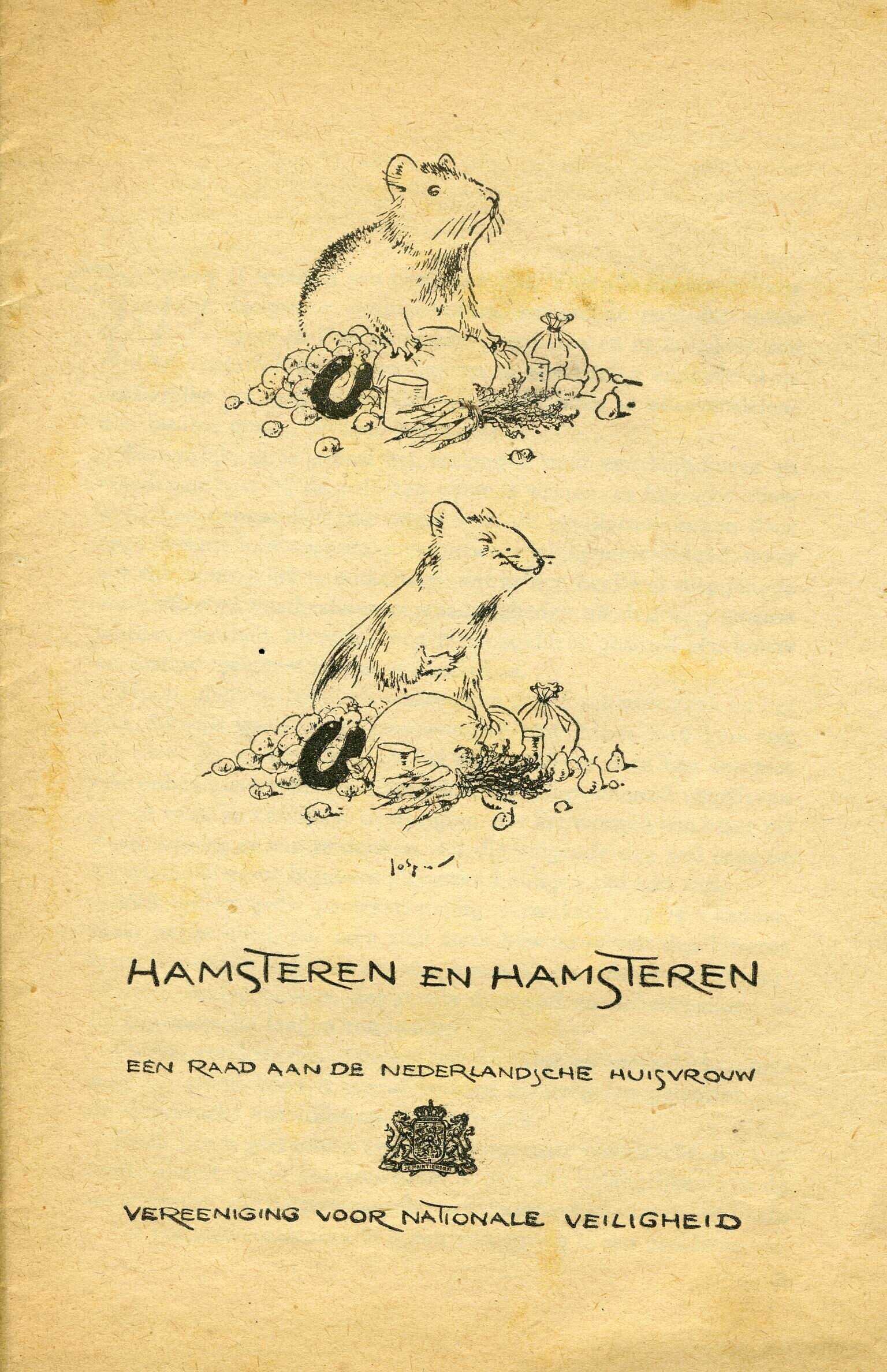 Een gedrukt boekje van 16 pagina's met de titel: "Hamsteren en hamsteren. Een raad aan de Nederlandsche huisvrouw" uitgegeven door de "vereeniging voor nationale veiligheid".