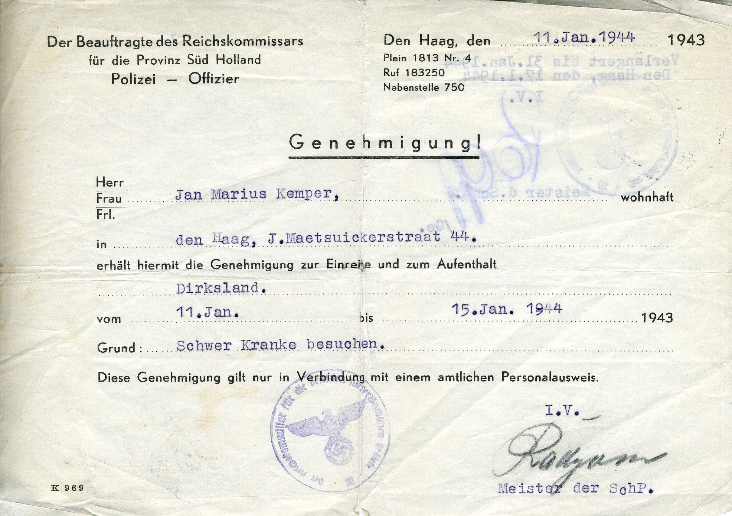 Vier verklaringen waarin toestemming wordt verleend aan Jan Marius Kemper om hem ongehinderd doorgang te verlenen.