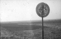 Een ingekleurd lantaarnplaatje met een zwart papieren rand. Op het plaatje is een man in uniform met een collectebus afgebeeld naast een verkeersbord met: "Halt". De overige tekst luidt: "23 en 24 januari Winterhulp Nederland".