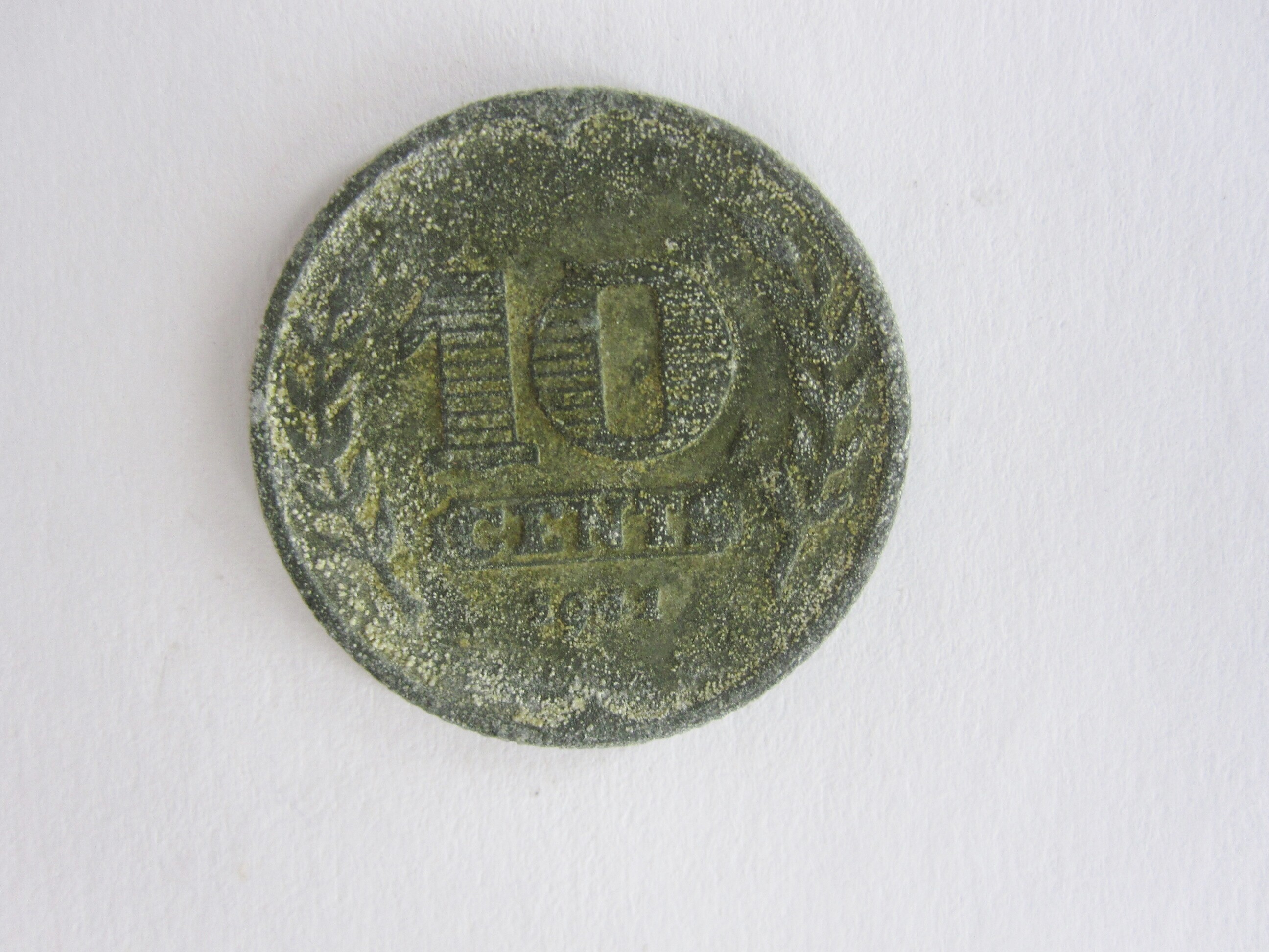 Twee zinken munten van tien cent. Eén uit 1941 en één uit 1942 met op de voorzijde de waarde aanduiding: "10 Cents" en daaronder het jaartal. Aan weerszijden een tak als van een lauwerkrans. Rechts onder de "10" staat het muntteken: Mercuriusstaf (Utrecht). Op de keerzijde zijn drie tulpen afgebeeld in een dubbel rond kader. Onderaan staat: "Nederland". De ontwerper van de munt is N. de Haas.