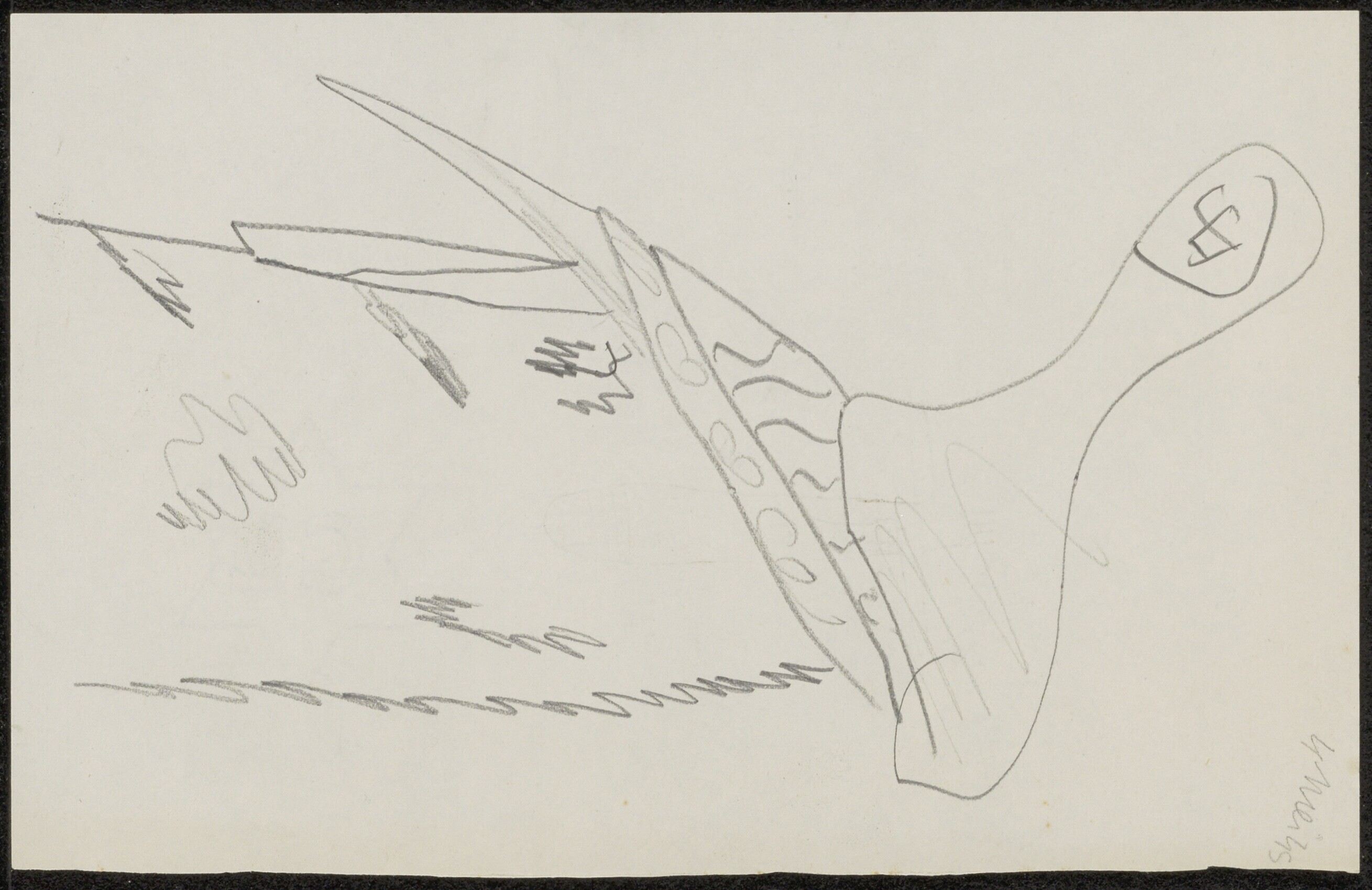 Vijf potloodtekeningen gedateerd 4 mei 1945 en één ongedateerd met de afbeeldingen van verwrongen figuren, waarvan sommige duidelijk te herleiden zijn tot militairen uit de oorlogsperiode. De gedateerde blaadjes zijn zowel aan de voorkant als aan de achterkant voorzien van een tekening. Op één tekening is een gevechtsvliegtuig weergegeven.