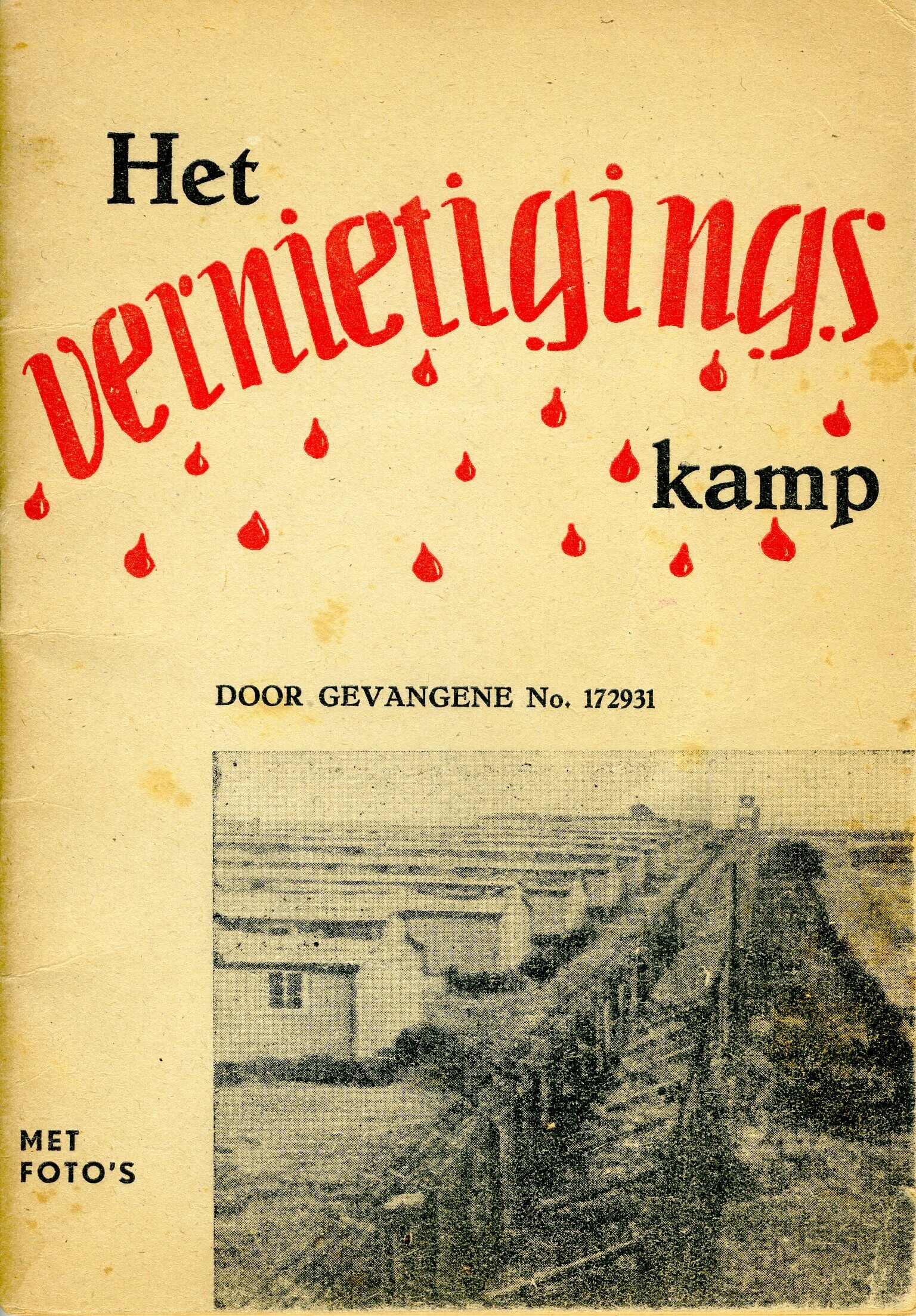 Een gedrukt boekje met op de kaft: "Het vernietigingskamp door gevangene No. 172931" en een zwart-wit foto van de barakken van het kamp Majdanek bij Lublin. Het 32 pagina's tellende boekje is een uitgave van Fox-Hollandiae te Amsterdam en is geïllustreerd door 7 zwart-wit foto's van het kamp. Achterin twee bijlagen: 1. "Communiqué van het Agentschap "Pol.-Press"; 2. "Verklaring van den Duitschen Generaal Moser aan het Hoofdcommando van het Rode Leger" gedateerd: 29 augustus 1944.