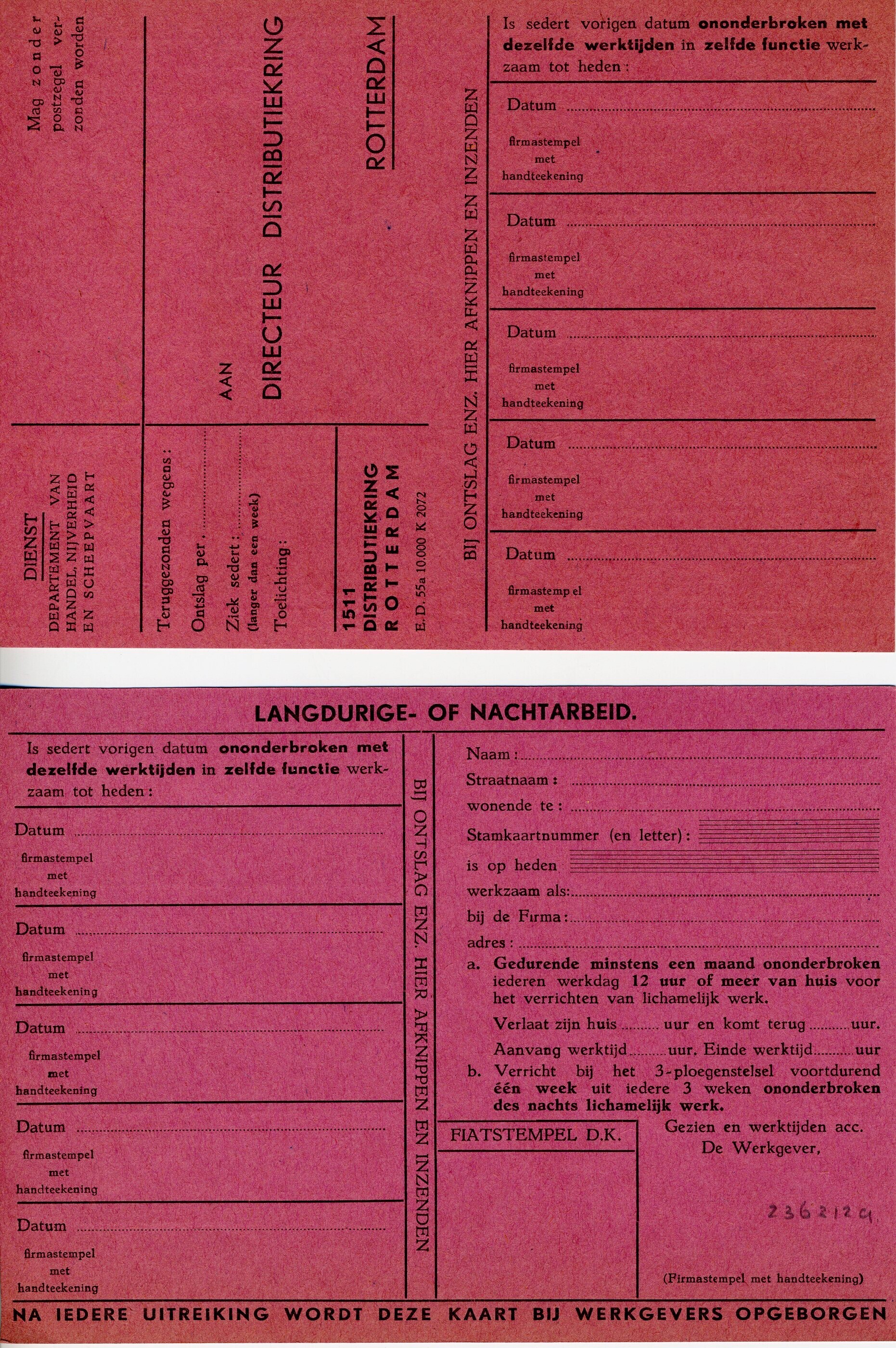 Formulieren die verband houden met het aanvragen en administreren van extra toeslagkaarten en rantsoenbonnen voor zware of langdurige (nacht-) arbeid.