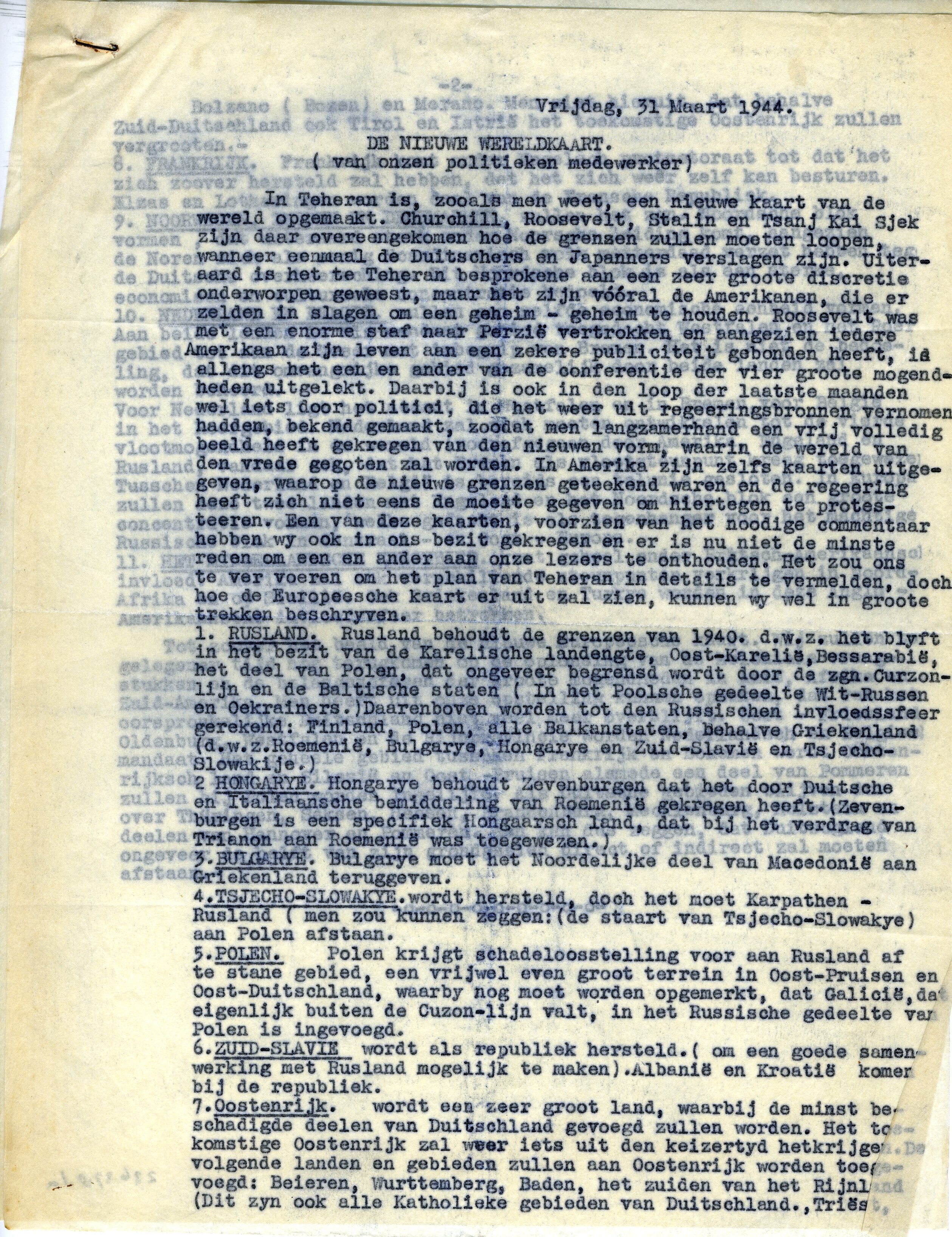 Zeven afschriften en doorslagen van getypte documenten over het verloop van de oorlog.