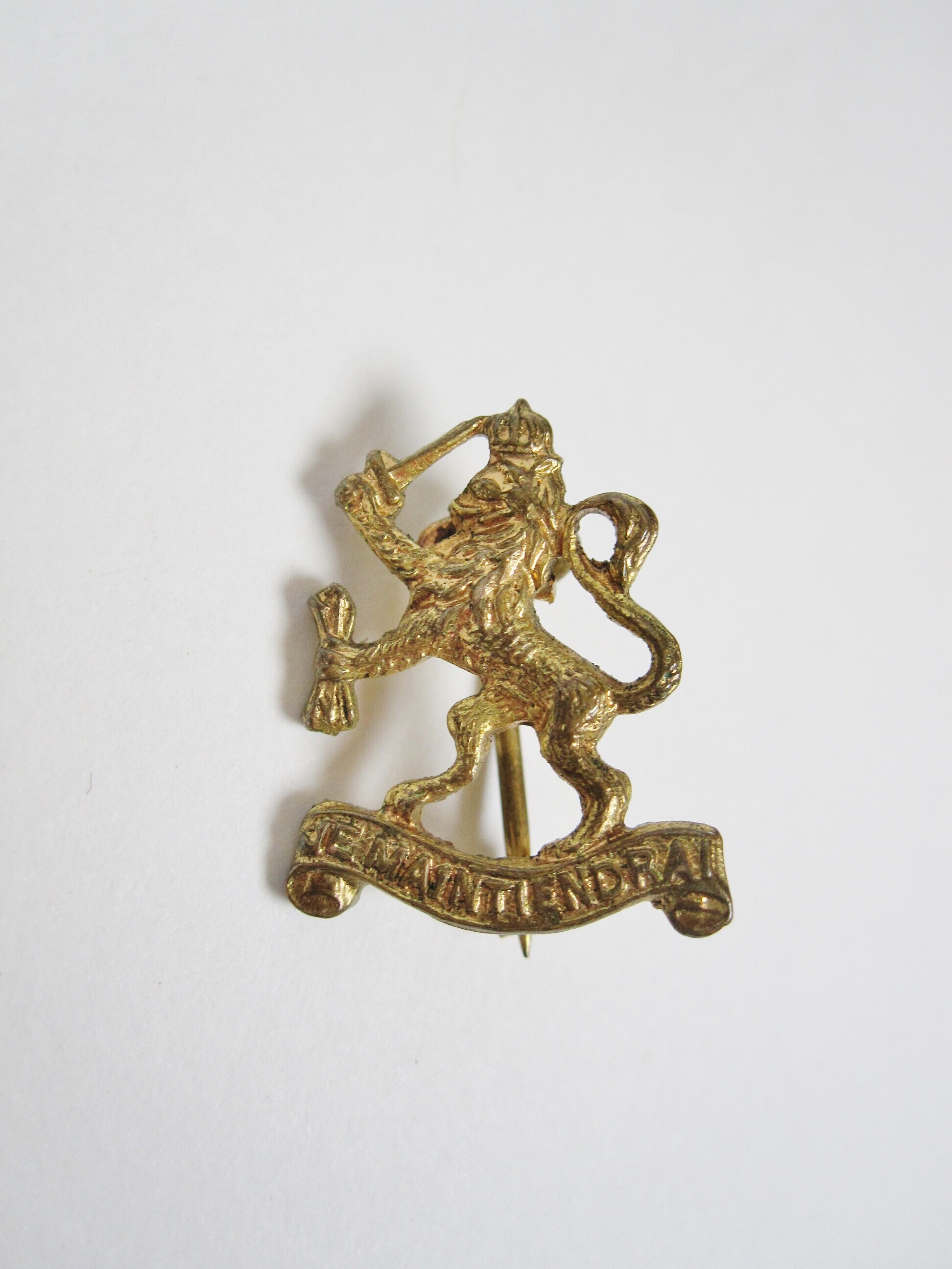 Een koperkleurig metalen speldje in de vorm van een uitgesneden klimmende Nederlandse Leeuw boven de wapenspreuk: 'Je Maintiendrai'. Mogelijk is het speldje gerelateerd aan het 'Spitfire Fund', de oorspronkelijke benaming van het Prins Bernhard Fonds dat op 10 augustus 1940 in Londen werd opgericht om geld in te zamelen voor de aanschaf van oorlogsmaterieel en kwam het terecht in Nederland, waar het soms onder het revers gedragen en getoond werd als stil verzet tegen de Duitse bezetter.