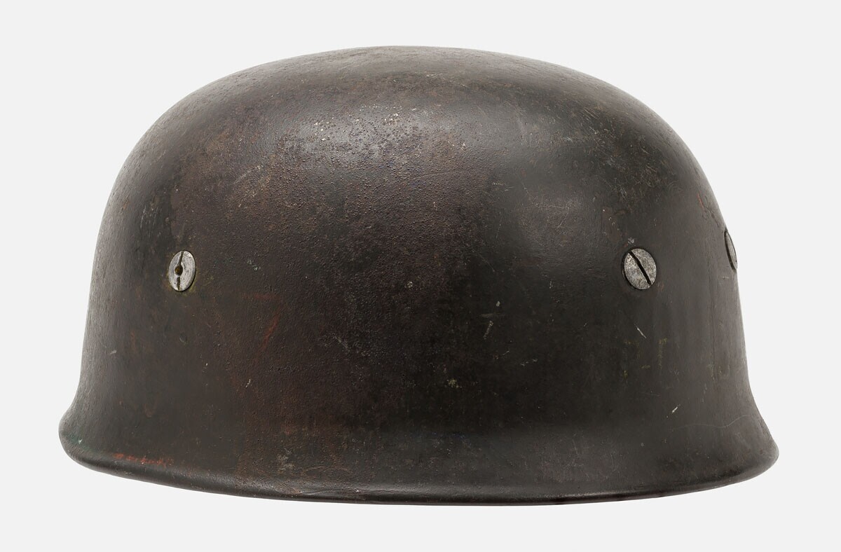 Duits parachutistenhelm, type M38 met binnenwerk. Fabrieksstempel CKL68 en neknummer 405. Op de voorkant van de helm een rode ster. Op de zijkant: "SS".
