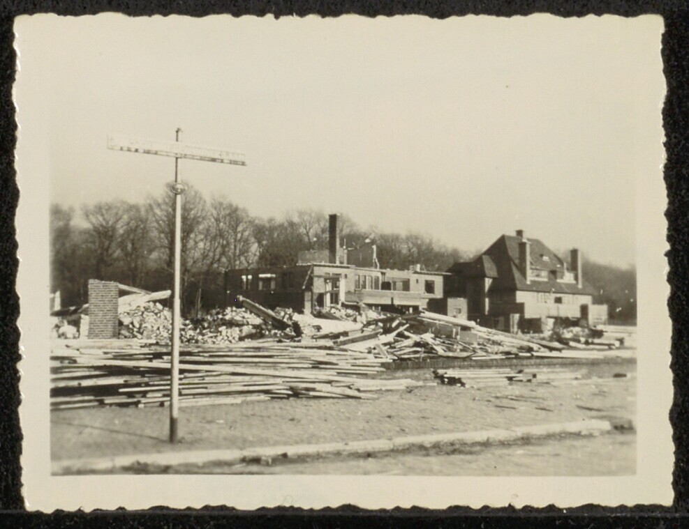Twee zwartwit foto's van de afbraak voor de Atlantikwall van de huizen aan de R.J. Schimmelpennincklaan: een foto met nr. 25: 30 januari 1943 (met potlood op de achterkant: R.J. Schimmelpennincklaan Zorgvliet), initialen: AvV (A. van Vliet); een foto met nummer 50 (met potlood op de achterkant: De Andries Bickerweg in Zorgvliet, hoek R.J. Schimmelpennincklaan): 5 februari 1943, initialen: AvV (A. van Vliet).