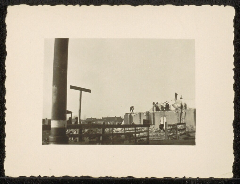 Een zwartwit foto van de afbraak voor de Atlantikwall van de huizen van de Goudenregenstraat: nr. 24: 30 januari 1943, initialen: AvV (A. van Vliet).