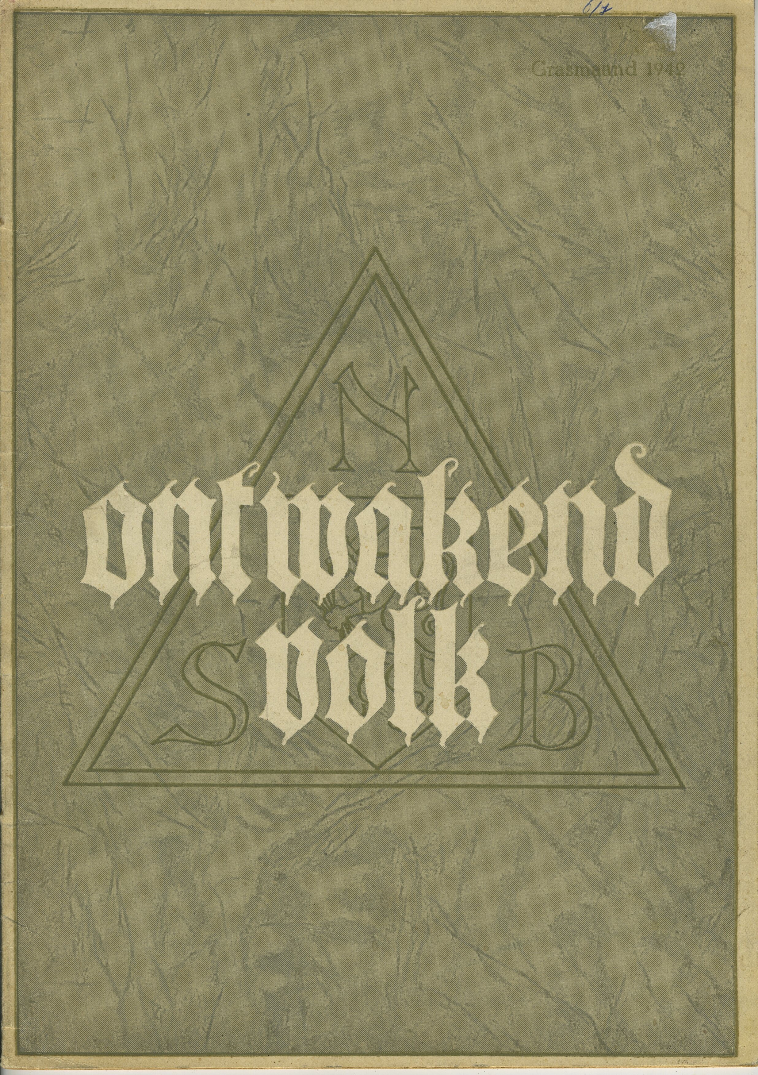 Een exemplaar van ''Ontwakend Volk, maandblad voor de vorming van den Nederlandschen geest'' van de N.S.B. Het betreft de zesde jaargang nummer 7., Grasmaand 1942 (april 1942).