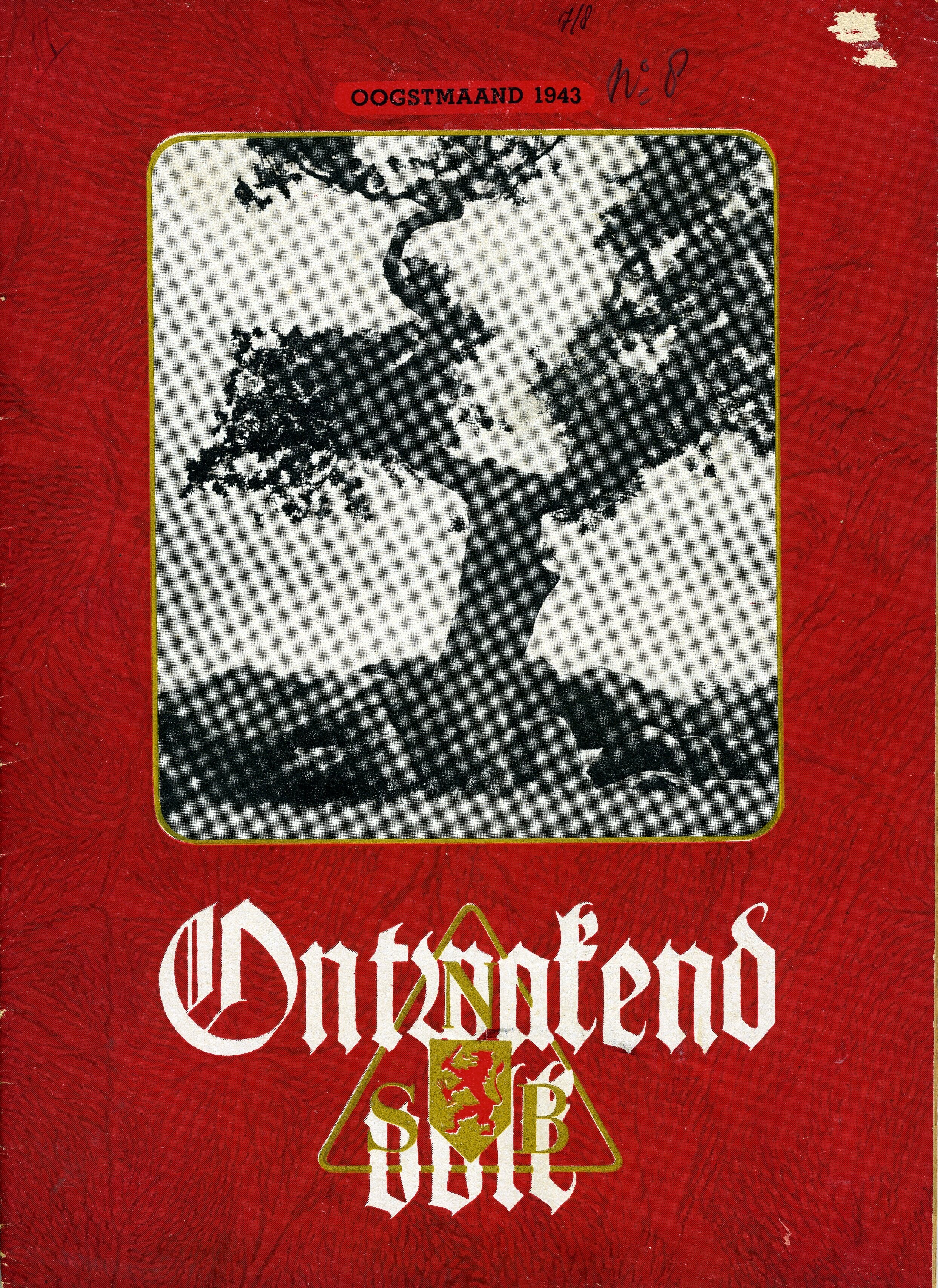 Een exemplaar van ''Ontwakend Volk, maandblad voor de vorming van den Nederlandschen geest'' van de N.S.B. Het betreft de zevende jaargang nummer 8., Oogstmaand 1943 (augustus 1943).