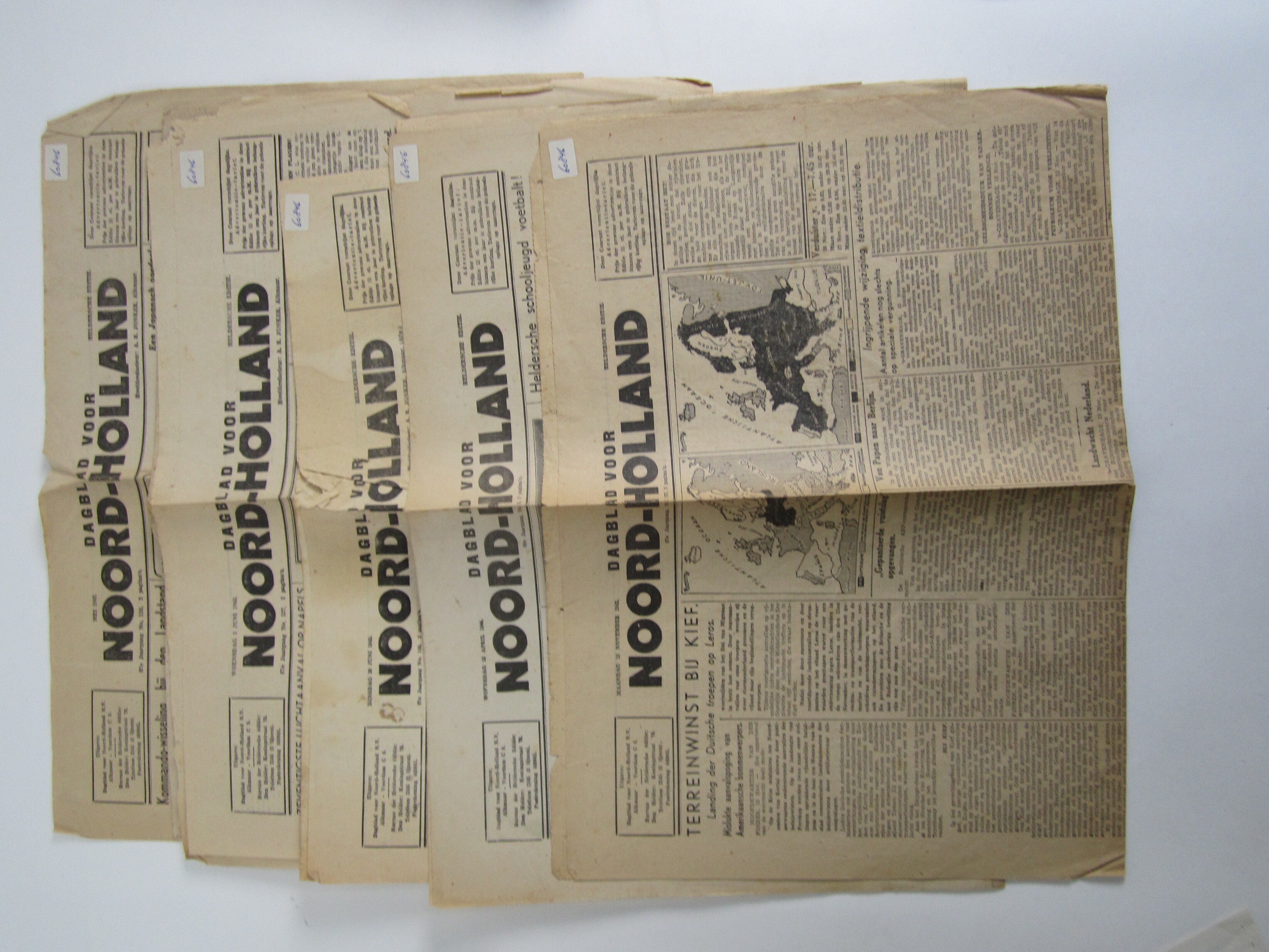 Dagblad voor Noord-Holland.<br>6 exemplaren uit 1943 : 29 juni, 2 juni, 27 mei, 20 mei (?), 15 nov. (Helderse editie) en 12 april 1944.<br><br><br><br>