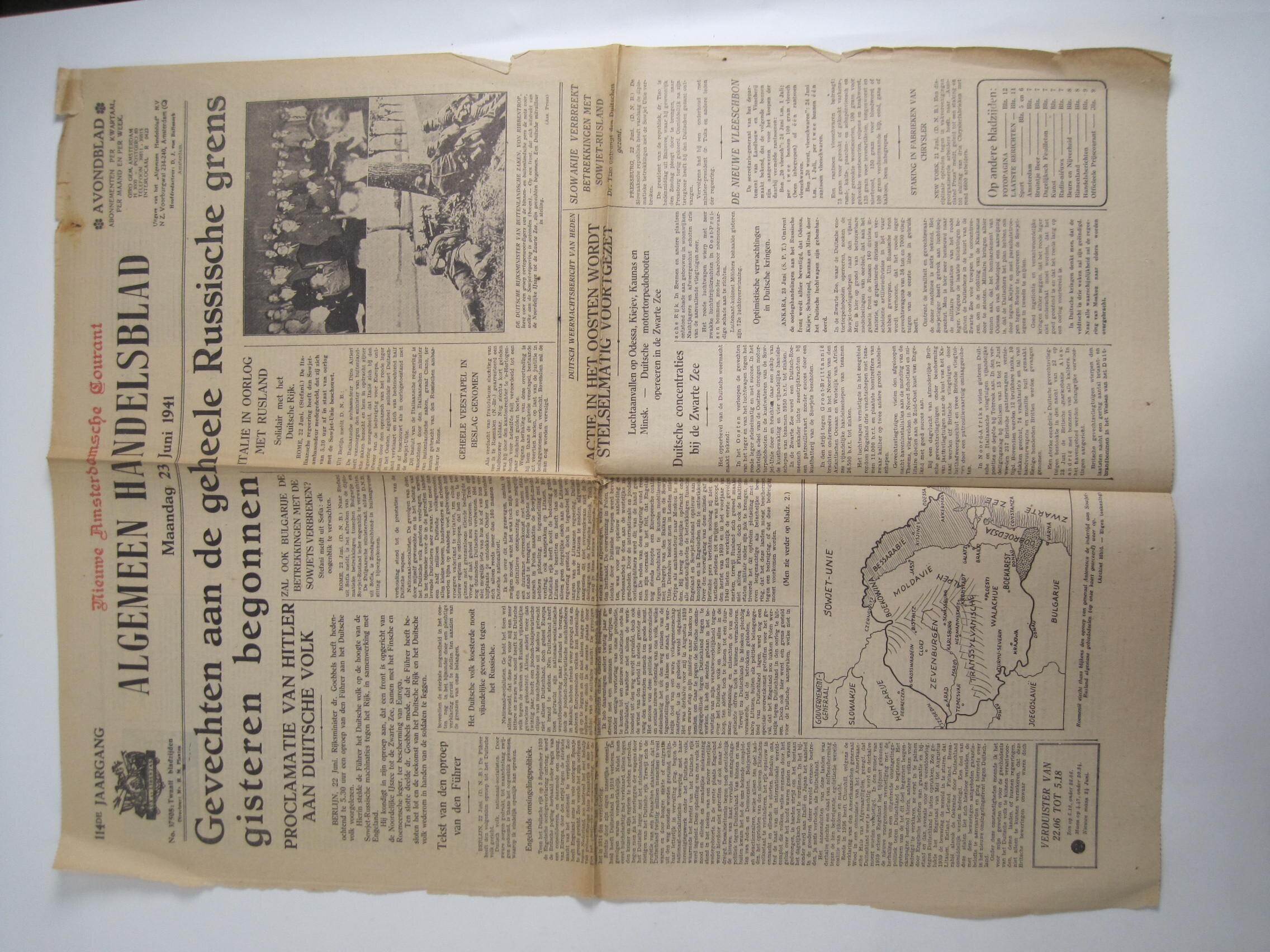Algemeen Handelsblad 23 juni 1941.<br>Duitse aanval op Sowjet-Unie