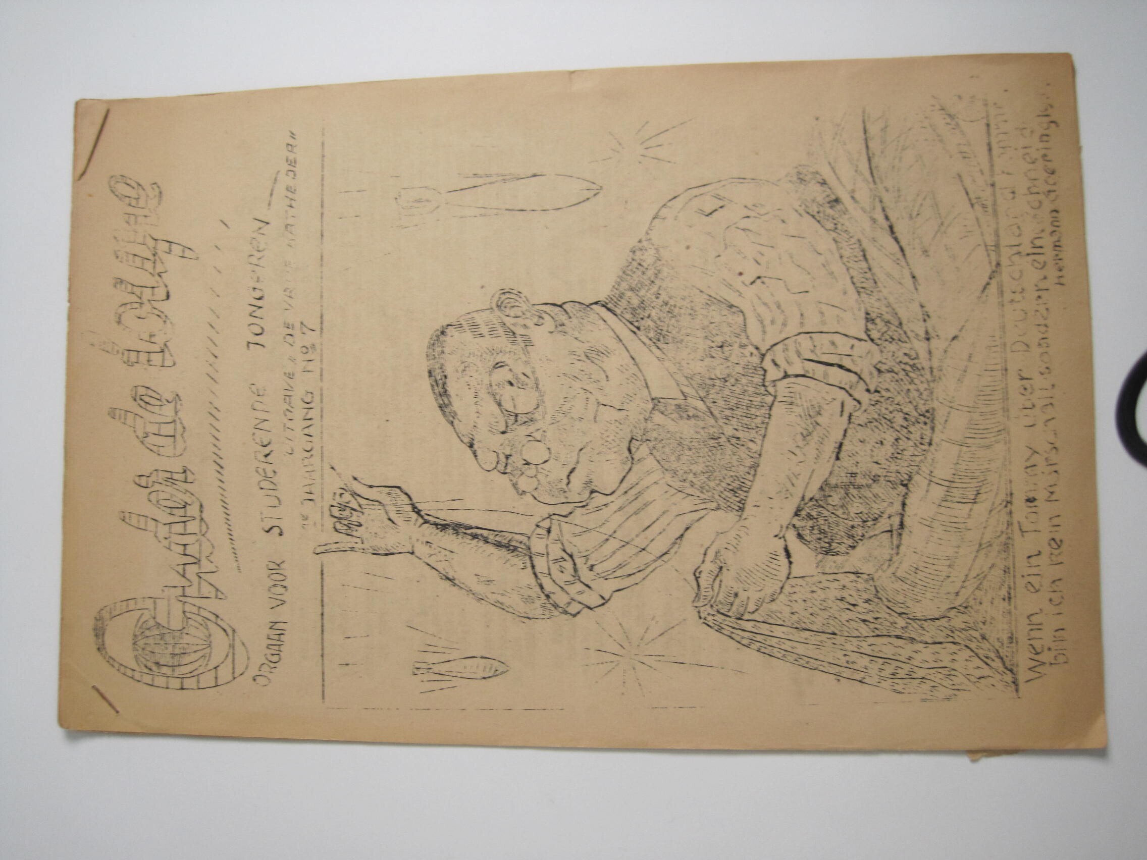 Onder de Loupe, Orgaan voor Studerende Jongeren.<br>Illegaal blad, uitgave van De Vrije Katheder, 1e jaargang, no. 7 (maart 1945 ?)