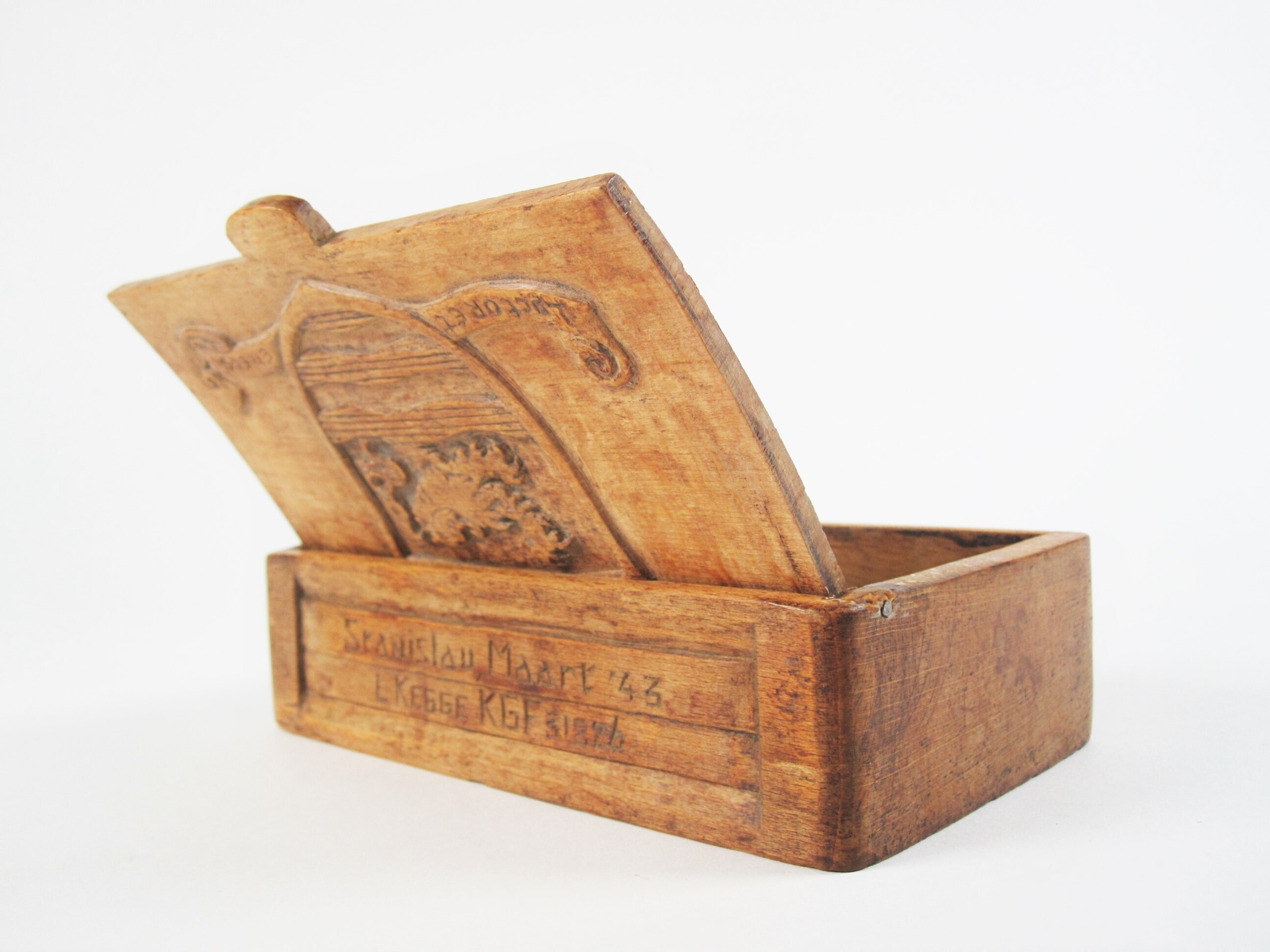 Houten kistje, een zogenaamd "Stanislau-kistje", genoemd naar het kamp Stalag 371 Stanislau waar van augustus 1942 tot januari 1944 Nederlandse officieren, cadetten en adelborsten in krijgsgevangenschap zaten. Op de deksel van het kistje is het wapen van Zeeland in het hout gesneden met daarop de tekst "Luctor et emergo" (ik worstel en kom boven). Op de zijkant aan de voorzijde is een medaillonvorm gesneden. Op de zijkant aan de achterzijde staat in het hout de volgende tekst gesneden: "Stanislau, Maart '43, L. Kegge KGF 31826. KGF 31826 was zijn krijgsgevangennummer.
