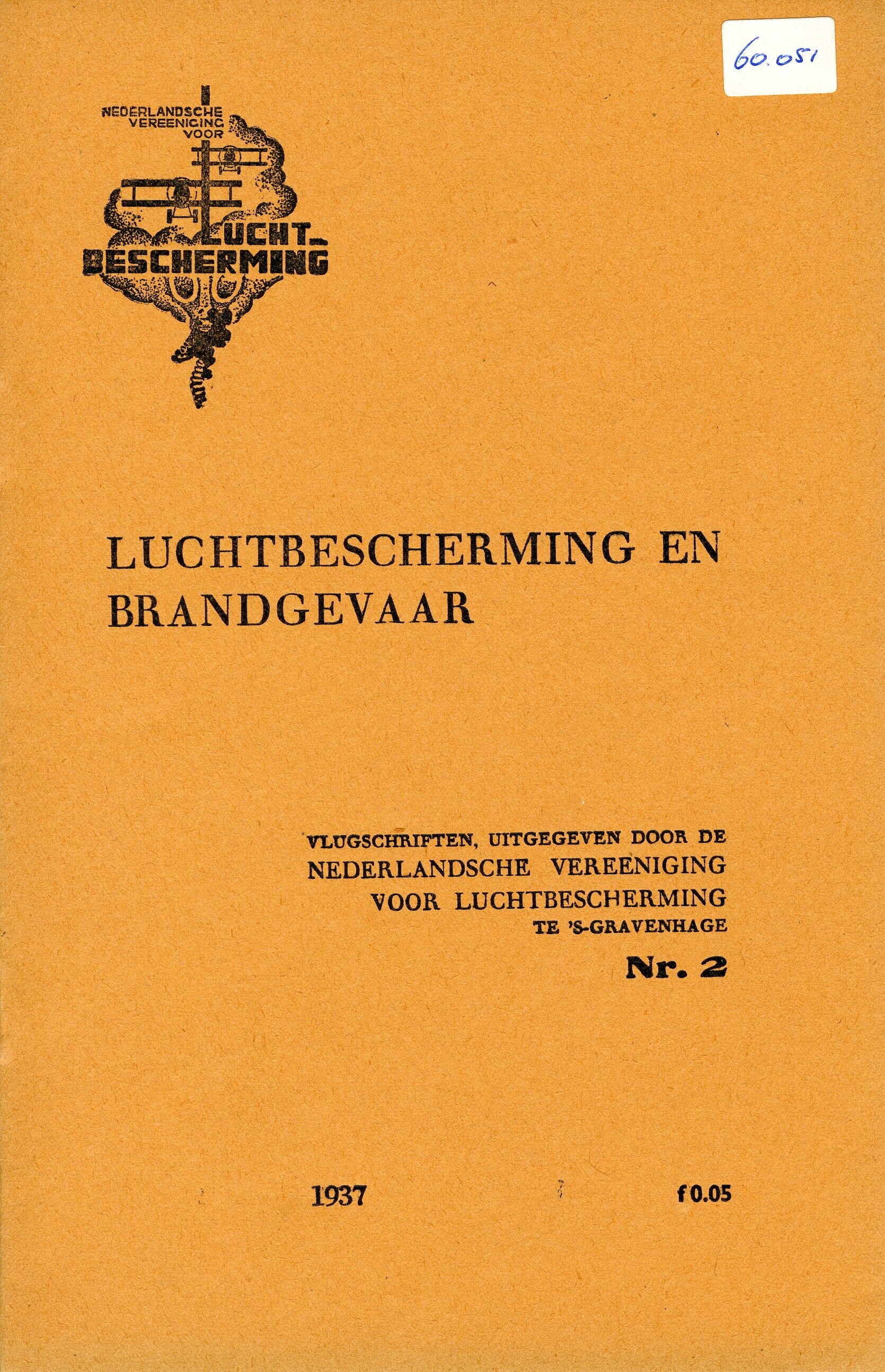 Uitgave van de Nederlandsche Vereeniging voor Luchtbescherming. Het betreft nummer 2 van een zevendelige reeks vlugschriften met instructies over de handelwijze bij luchtaanvallen. Op de oranje kaft is het logo afgebeld van de vereniging. Het tweede nummer omvat 8 pagina's en gaat over luchtbescherming en brandgevaar.