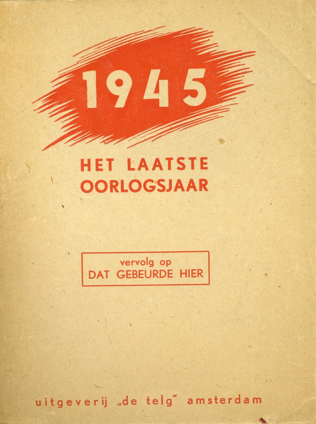 Twee exemplaren van een boek over 1945. Het boek is een vervolg op 'Dat gebeurde hier' en geeft een gedetailleerd een verslag (per dag) van de gebeurtenissen in het laatste oorlogsjaar (sept.1944-mei 1945). De boeken werden tijdens de bezetting geschreven, gedrukt en uitgegeven door de illegale firma Wim Douma en Jan Heertjens. De firma was reeds gevestigd en bleef voortbestaan onder de naam 'de telg'. 'Dat gebeurde hier' werd samengesteld door Wim Knol (pseudoniem van S.Presser) en 'Het laatste oorlogsjaar' door Cajo van Beyeren. Het boek omvat 278 pagina’s.