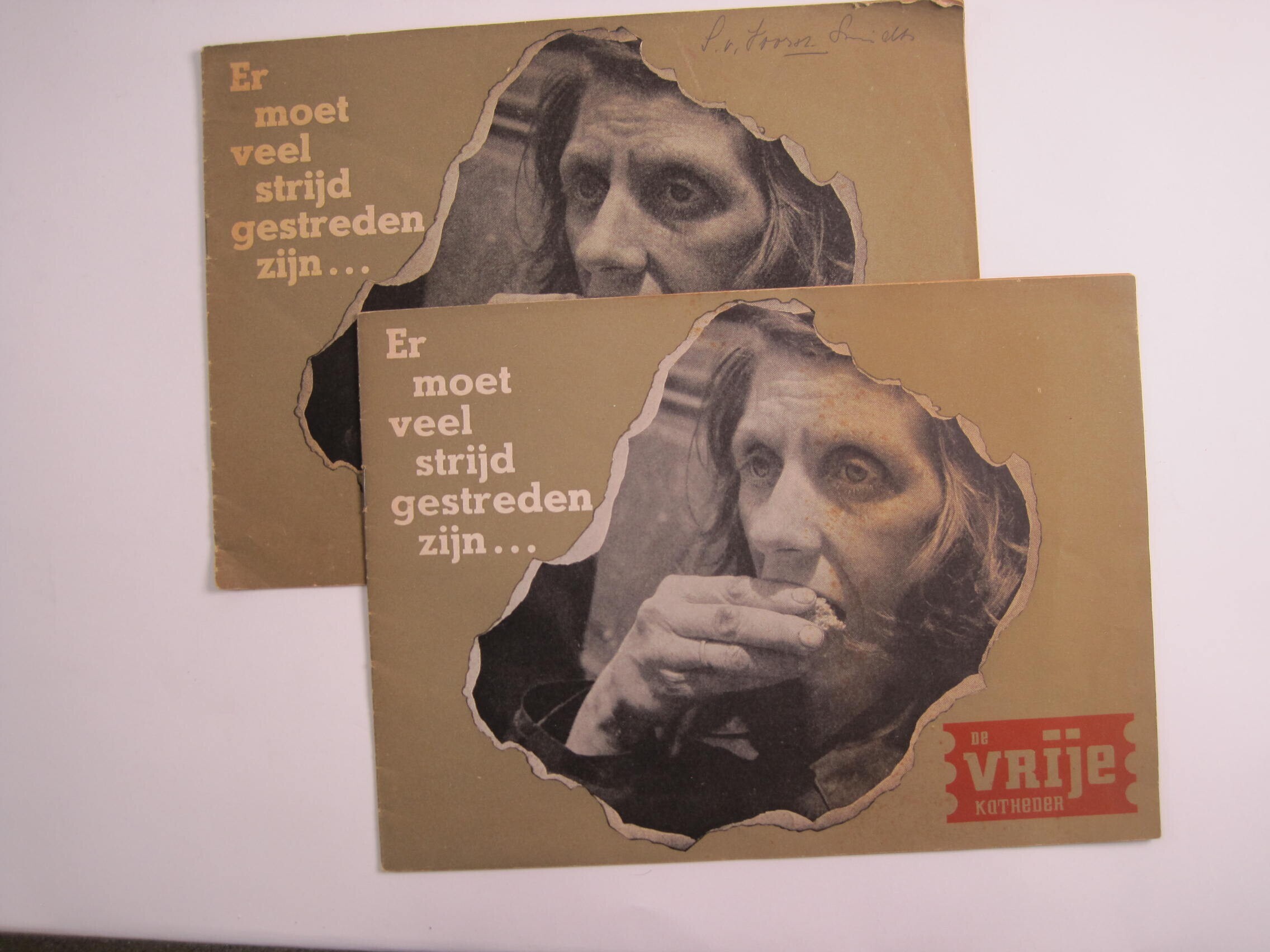 Speciale uitgave van 'De Vrije Katheder': 'Er moet veel strijd gestreden zijn', 1945, foto's oorlogsleed. 2 exemplaren.