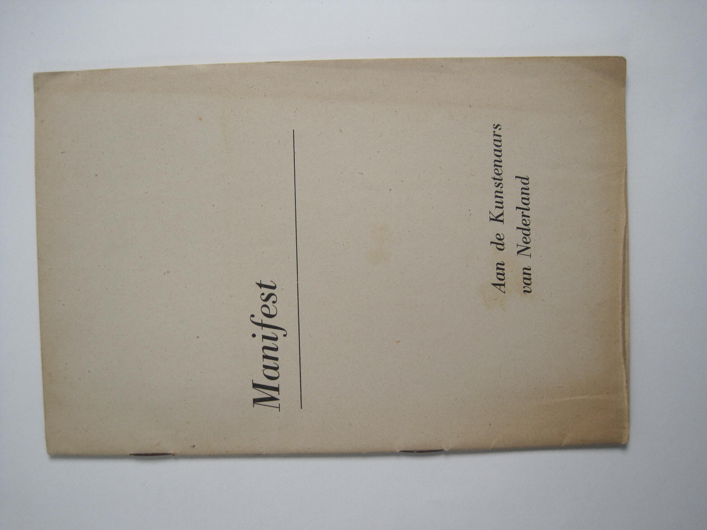 "Manifest aan de kunstenaars", na de bevrijding. 27 p.. Achterin lijst met namen van ondersteuners.