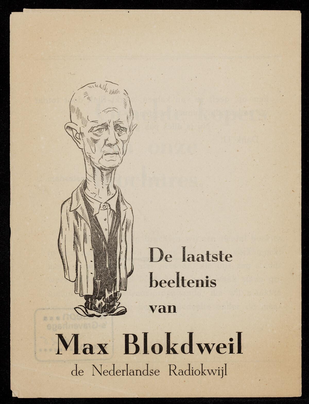 Drukwerkje gericht aan de "geachte kopers van onze brochures" met een pleidooi voor de doodstraf voor Max Blokzijl en een oproep om Nederland daadwerkelijk van het nationaal-socialisme te zuiveren. Op de voorzijde een karikatuur van Blokzijl.