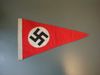 Een sterk verbleekt N.S.B.-vaantje in de kleuren rood en zwart bedrukt met "Houzee". Het vaantje heeft aan de onderkant rood en zwart franje en heeft aan de bovenkant de mogelijkheid om daar een stokje doorheen te steken.