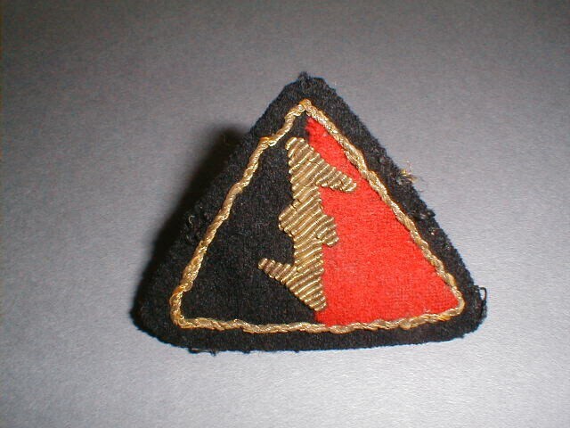 Embleem van de Weerbaarheidsafdeling N.S.B. (W.A.) met het symbool van de wolfsangel in gouddraad op rood en zwart vilt gestikt.