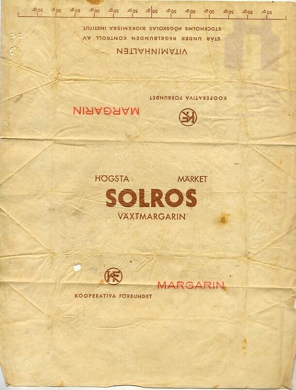 Een verpakking voor Zweedse margarine van het merk Solros.