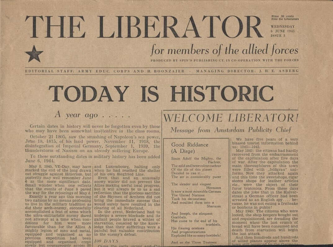Een uitgave van de Engelstalige krant "The Liberator'' voor de geallieerde strijdkrachten.