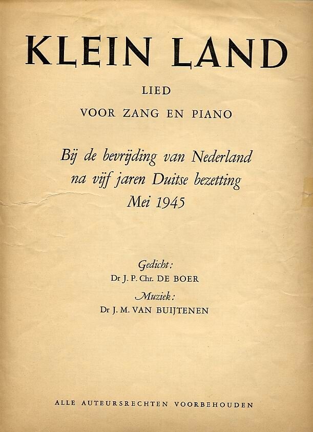 ''Klein Land'' is een lied voor zang en piano bij de bevrijding van Nederland na vijf jaar Duitse bezetting.