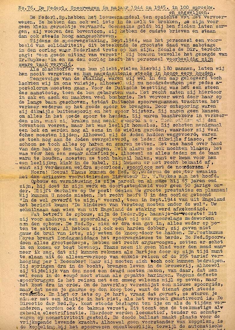 No. 76. De Nederlandse Spoorwegen in najaar 1944 en 1945.