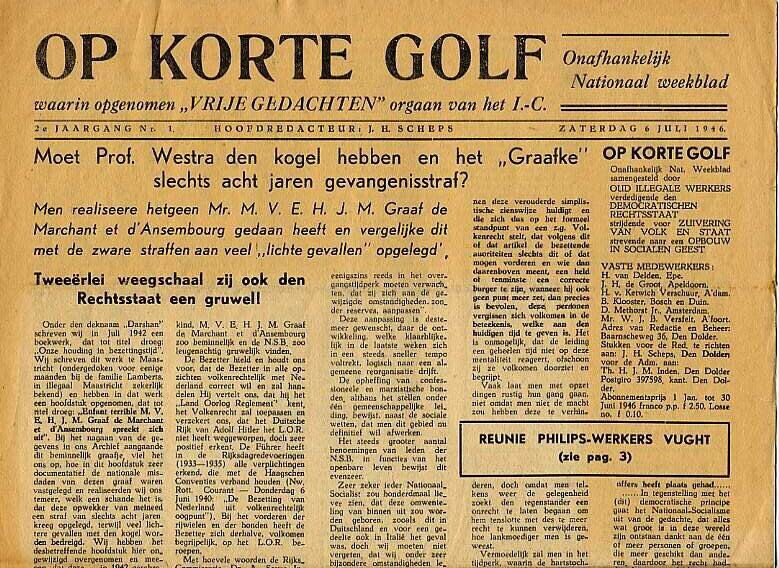Vier uitgaven van "Op Korte Golf. Onafhankelijk Nationaal weekblad". Het betreft de tweede jaargang 1946, de nummers: 1 , 3, 19 en 20.