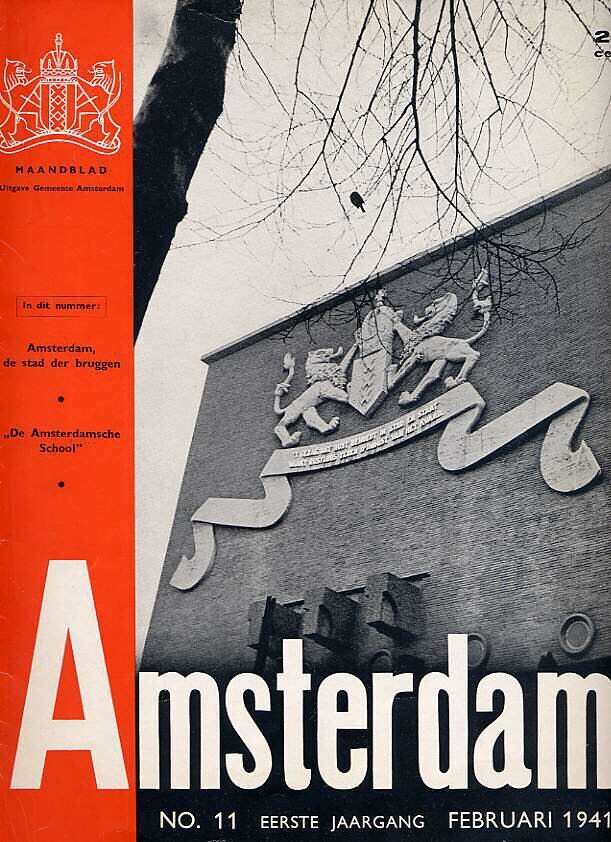 Geïllustreerd maandelijks tijdschrift van de gemeente Amsterdam. Eerste jaargang nummer 11 van februari 1941. Op de voorpagina een afbeelding van het Amsterdamse stadhuis. Links een rode bies met de afbeelding van het Amsterdamse wapen. Aan achterzijde een gedicht van Jan Campert.