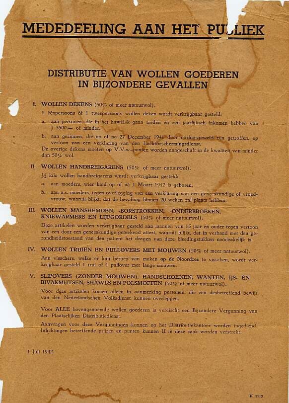 Mededeling over de distributie van wollen goederen in bijzondere gevallen.