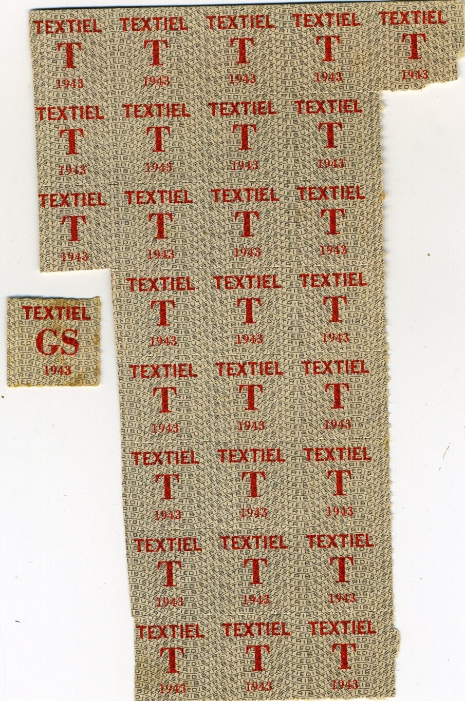 Een gebruikte bonkaart voor textiel met opdruk T 1934 en een losse distributie Textiel GS 1943.