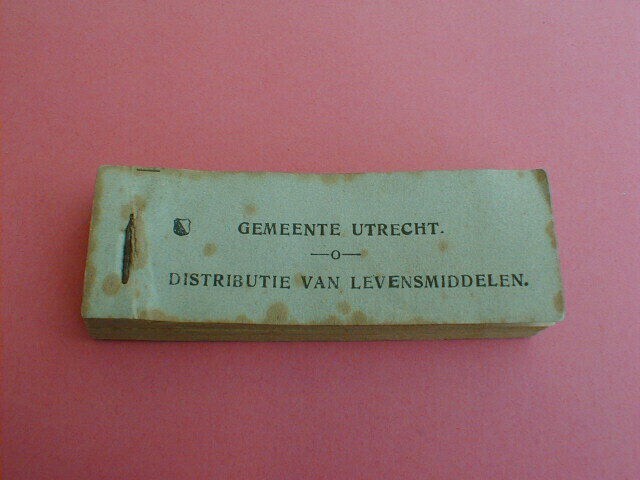Grijs bonboekje uitgegeven door de Gemeente Utrecht Distributie van Levensmiddelen. Op alle bonnen Staat het wapenschild van Utrecht, de letter K en een zwart nummer. Op de achterkant van de boekjes staat het reglement.