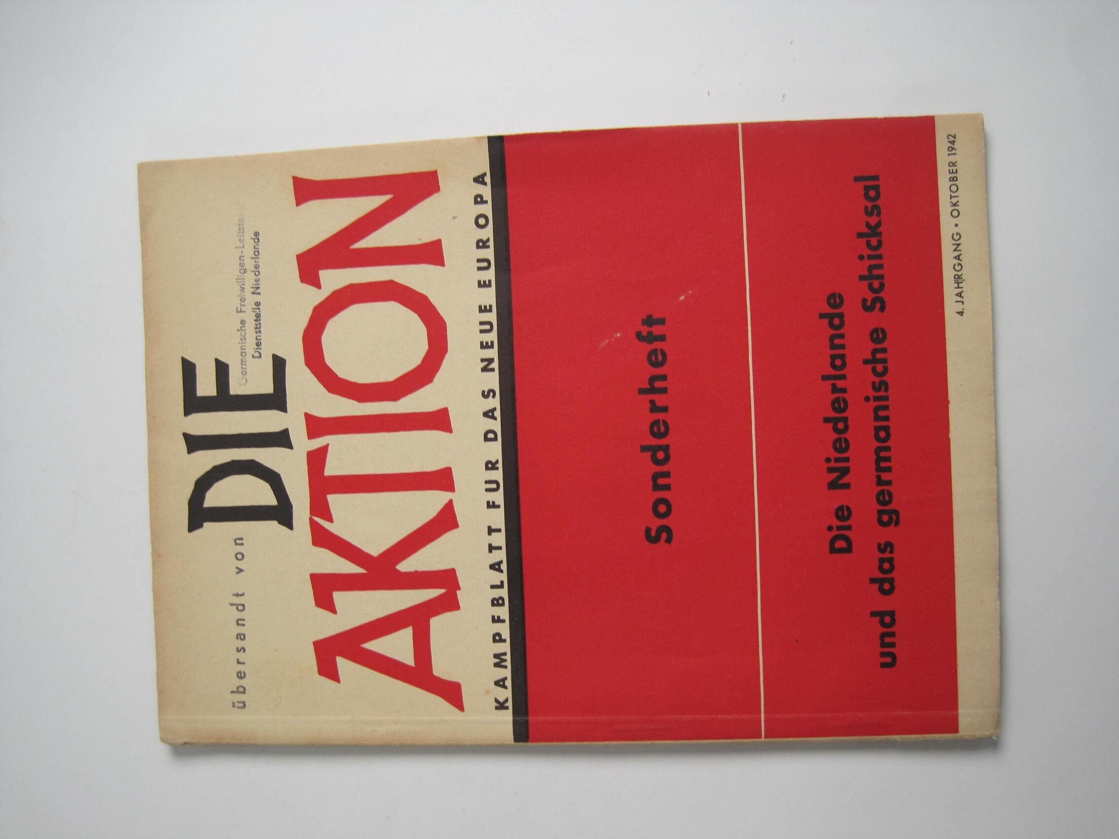 Een Duits tijdschrift: "Die Aktion. Kampfblatt für das neue Europa. Sonderheft: Die Niederlande und das germanische Schicksal" 4e jaargang van oktober 1942. Op de omslag een stempel met: "ÂVersand von Germanische Freiwilligen-Leitstelle, Dienststelle Niederlande".