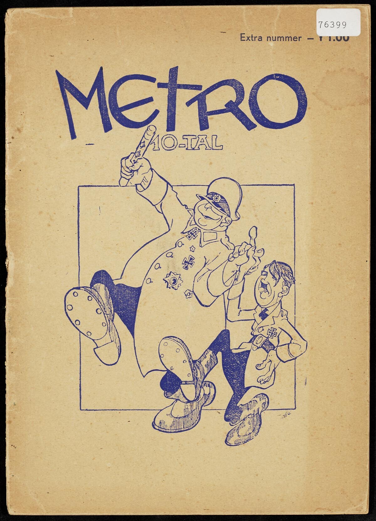 Exemplaar van het huisorgaan ''Metro''. De uitgave bevat spotprenten over Hitler en de "Moffen" met daarbij steeds de tekst van een lied, op de wijs van bekende kinderliedjes.