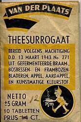 Zakje met 10 tabletten theesurrogaat van ''Van der Plaats''. De inhoud is nog aanwezig.