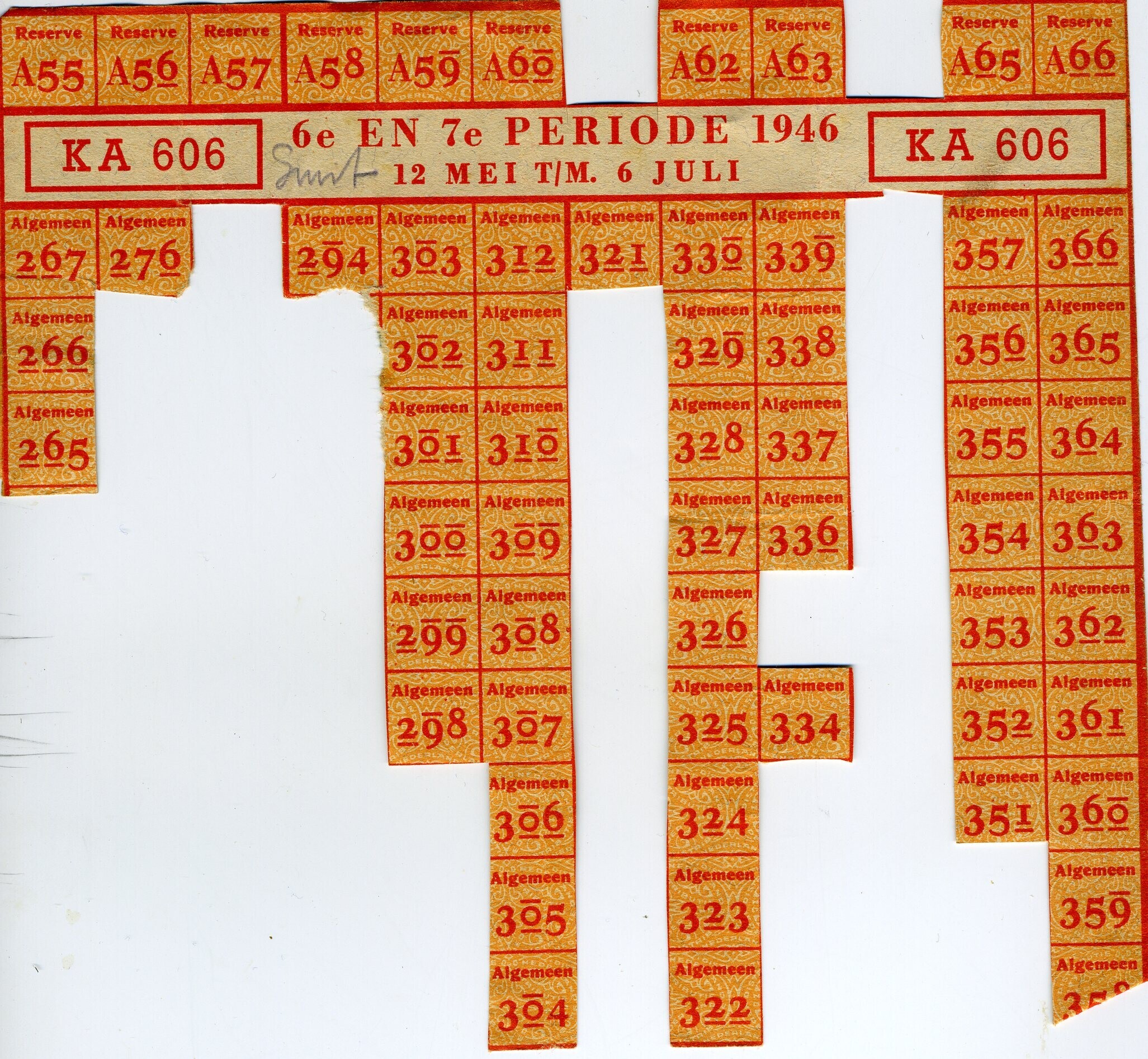 Incomplete bonkaart, kleur: rood, serie KA-606. Geldig van 12 mei tot en met 6 juli 1946.