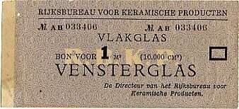 Grijskleurige bon voor het verkrijgen van1 M2 vensterglas. Machtiging uitgegeven door het Rijksbureau voor Keramische Producten.